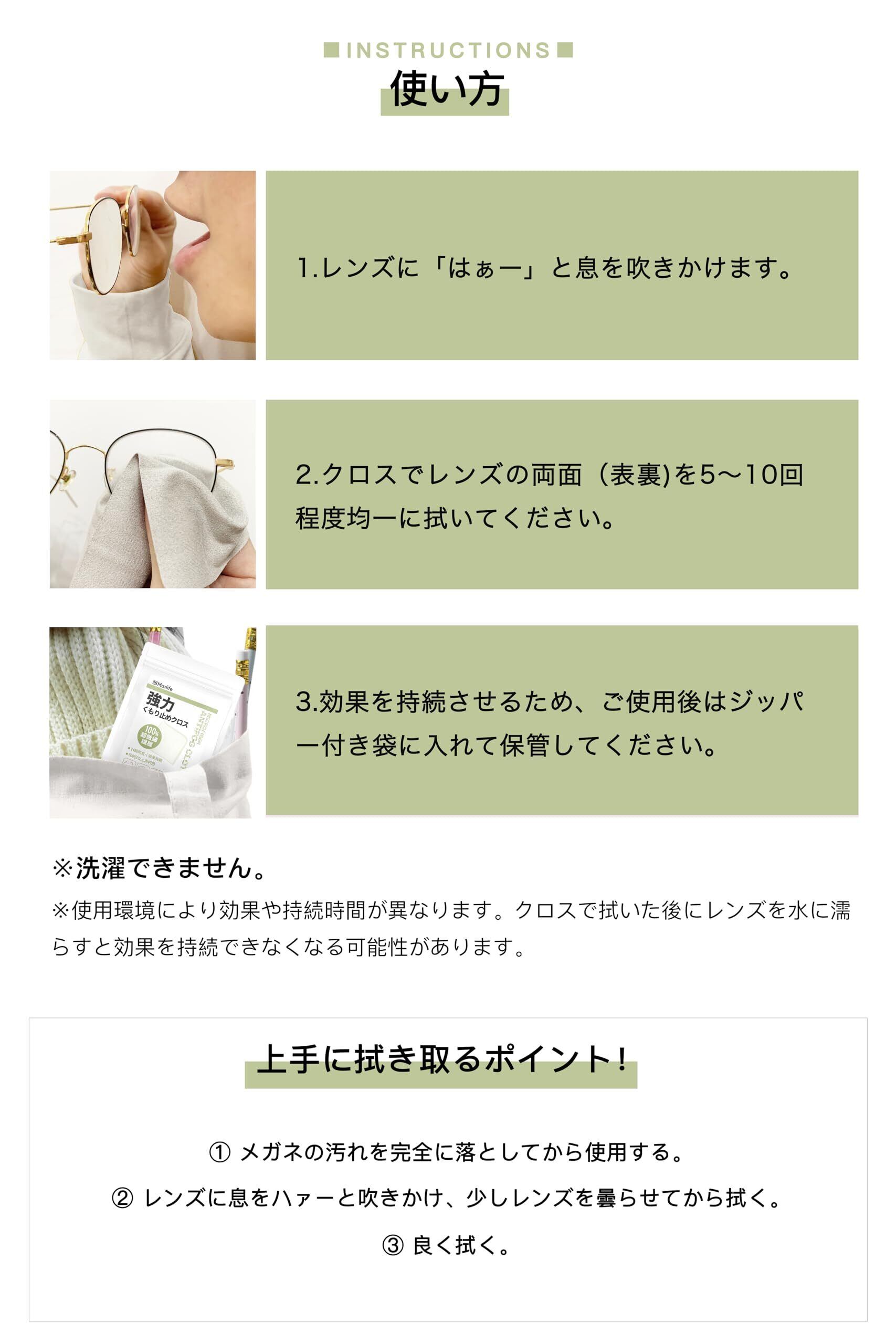 【24時間・長く効果持続】曇り止めクロスは親水性被膜が取れなければ、1日に1回拭くだけで、曇らずにスッキリし、24時間に快適に過ごすことができます(使用環境により効果・持続時間が異なります。くもりどめ被膜後にレンズを拭いたり、水に濡らすと曇り止め効果がなくなります)