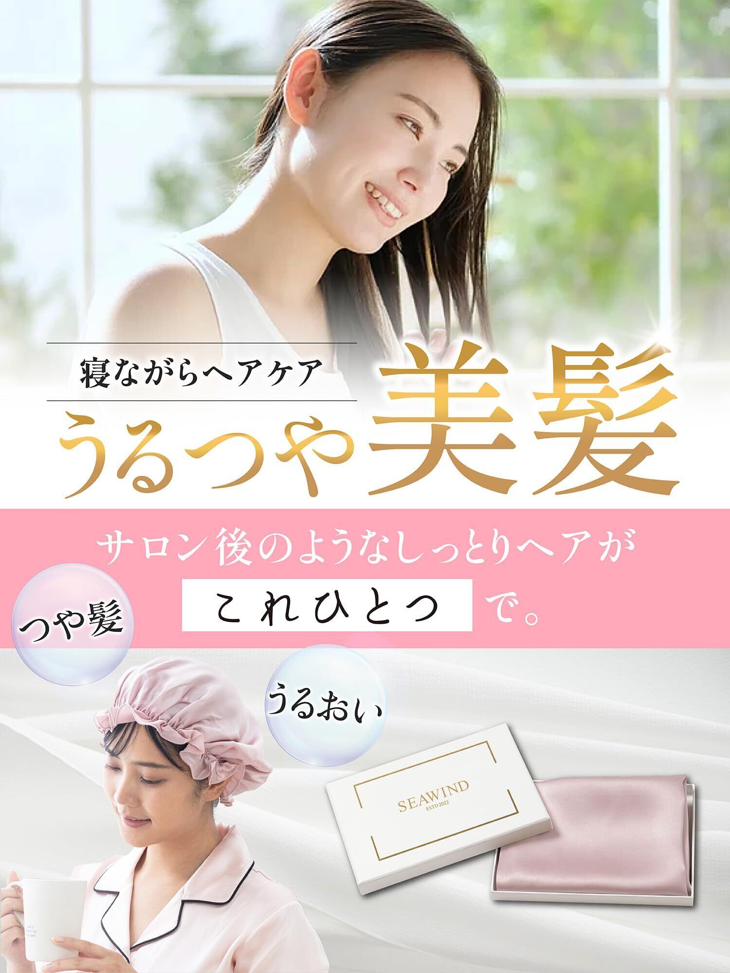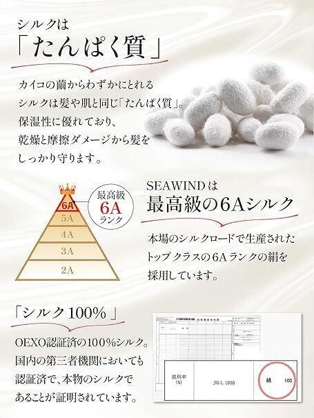 【天然シルク100%】SEAWINDのシルクナイトキャップは両面に6Aランクのシルクを使用!通気性や保湿性に優れ機能性も抜群!オールシーズン使えるナイトキャップなのも嬉しいさらに、肌に優しい天然素材なので、敏感肌の方や赤ちゃんでも安心して使用できます。