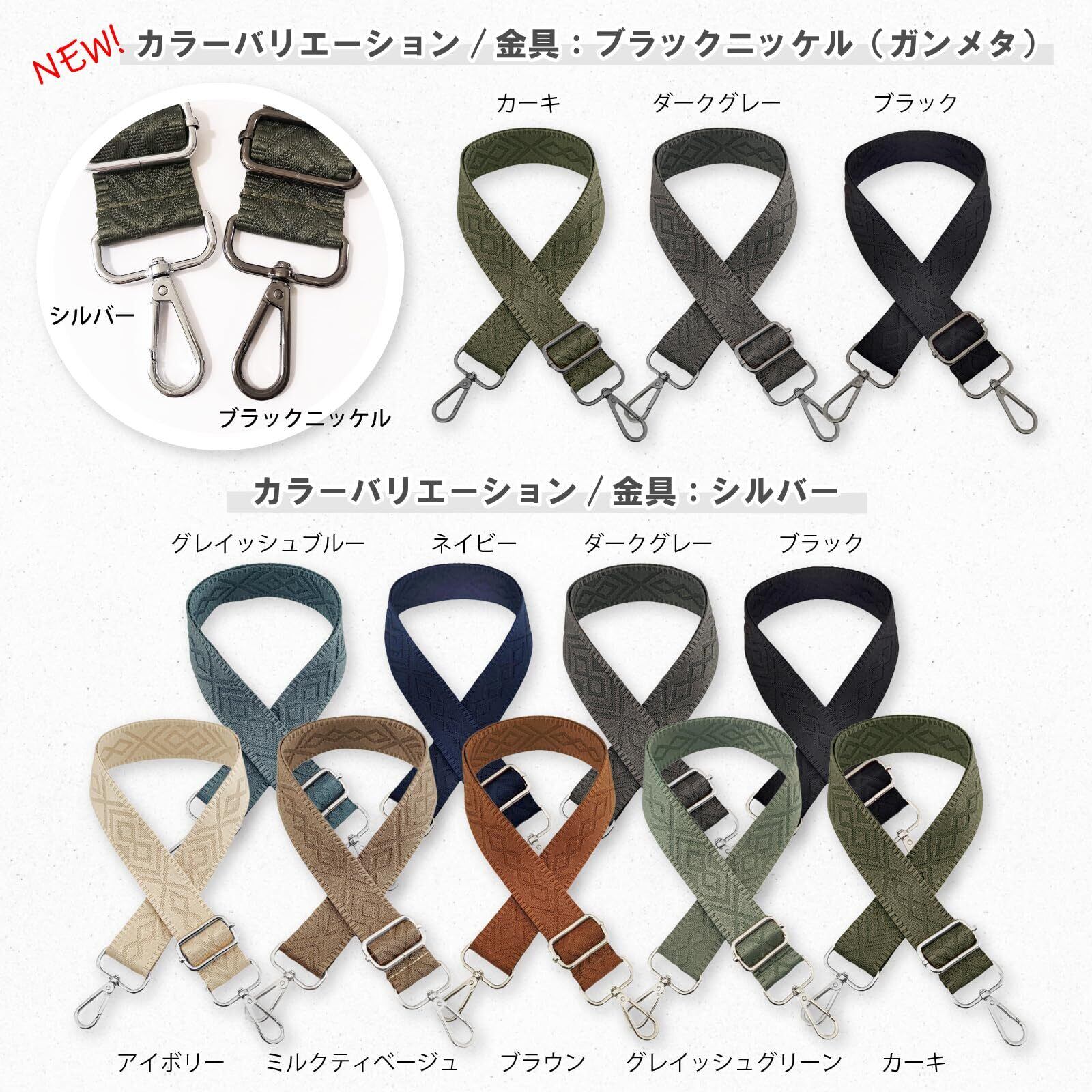[Cocovist] ショルダーベルト 太め 単品 柄 幾何学模様 3.8cm 幅 ショルダーストラップ レディース バッグ用 幅広 おしゃれ 付け替え ベルト 調整可能 ストラップ カラビナ付き 回転 金具 シルバー ガンメタ ジャガード