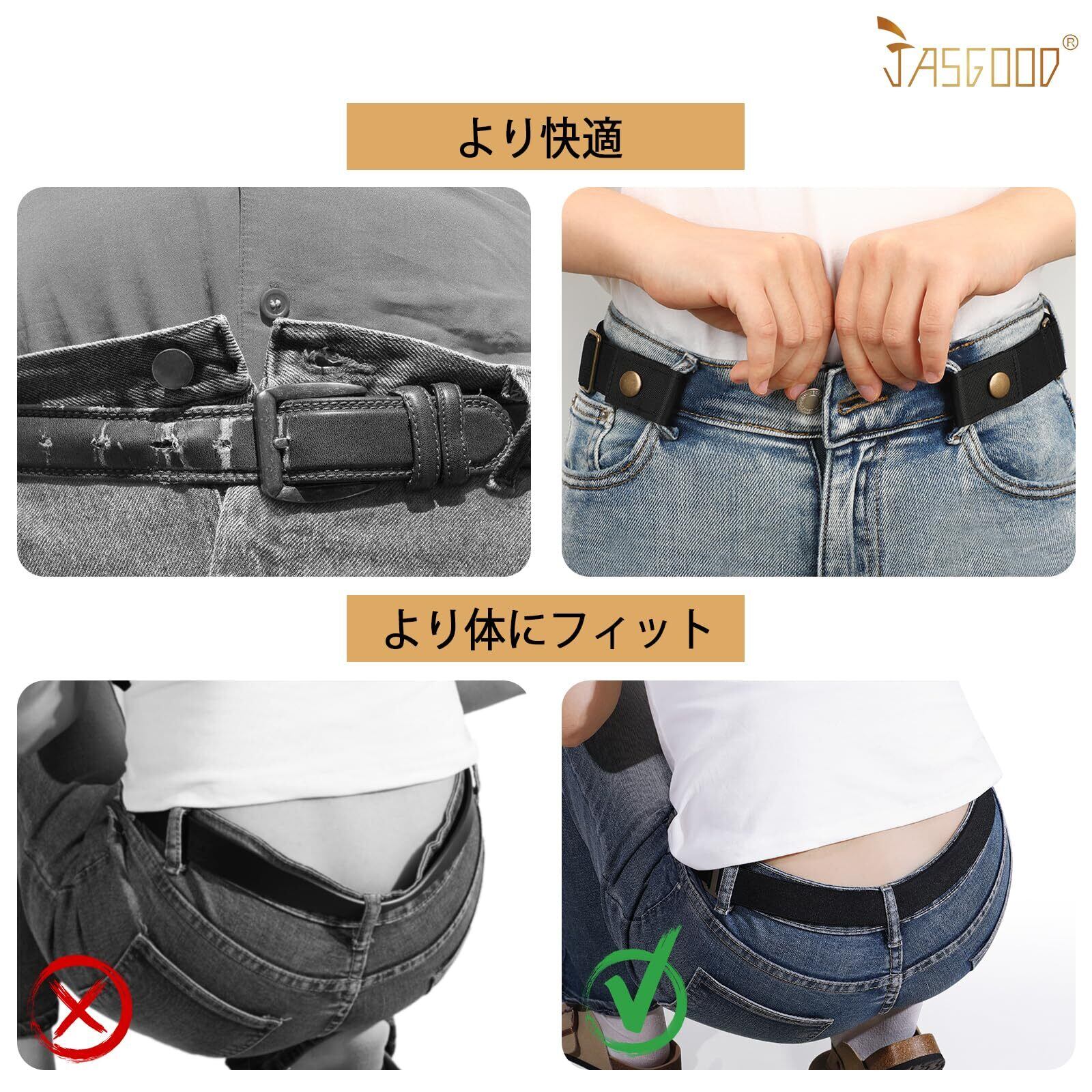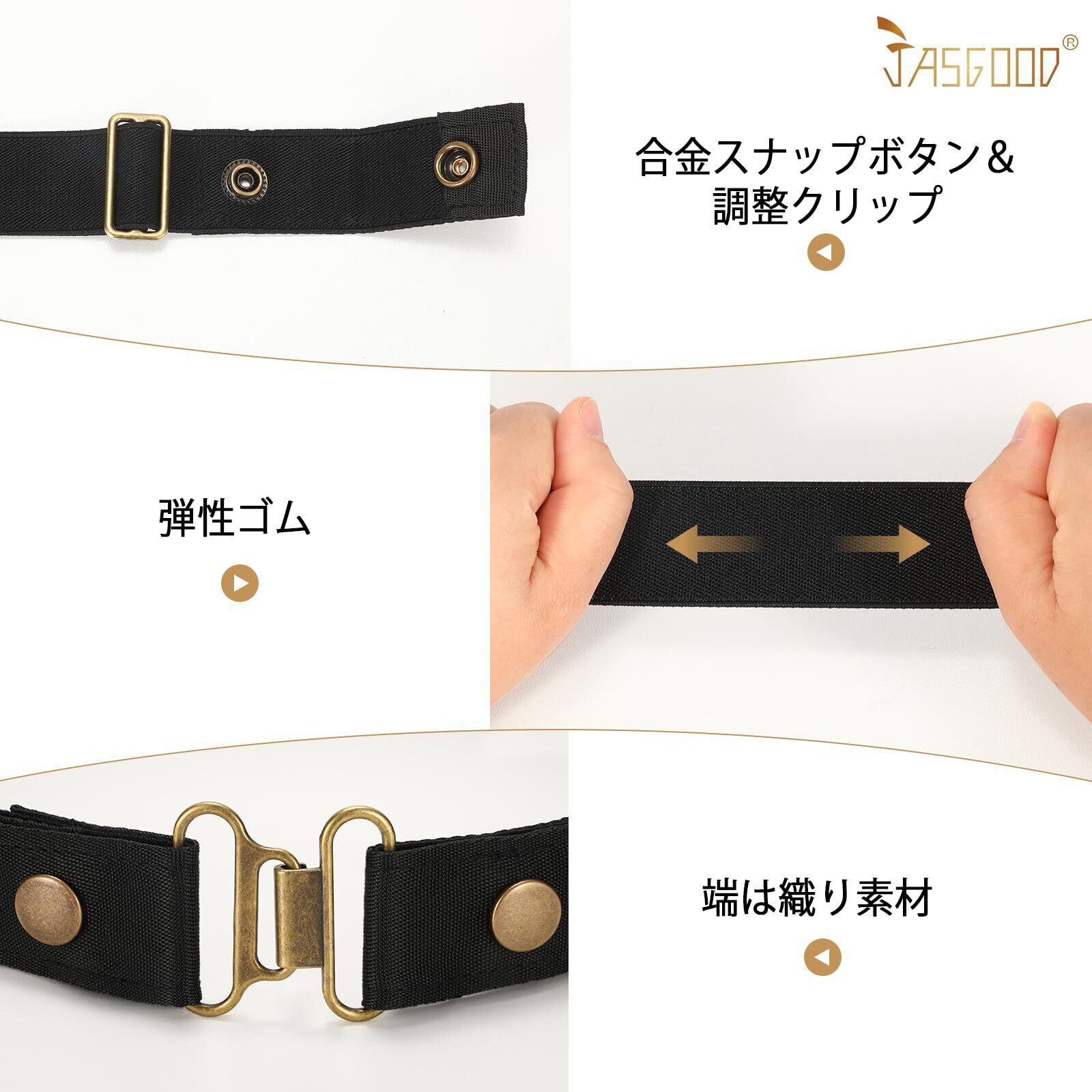 [JASGOOD] ゴムベルト レディース 幅3cm 穴なしベルト バックルなし カジュアル おしゃれ おおきいサイズ 調整可能