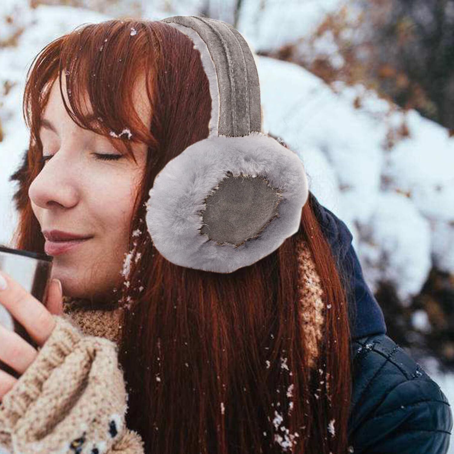 【 やさしい耳当てフィット感】 人工ファーとシープバックフリースを使用した極細繊維が、耳をしっかり包み込みながらも圧迫感を与えません。耳周りの冷気を遮断し、一日中あたたかく快適な着け心地を実現しました。