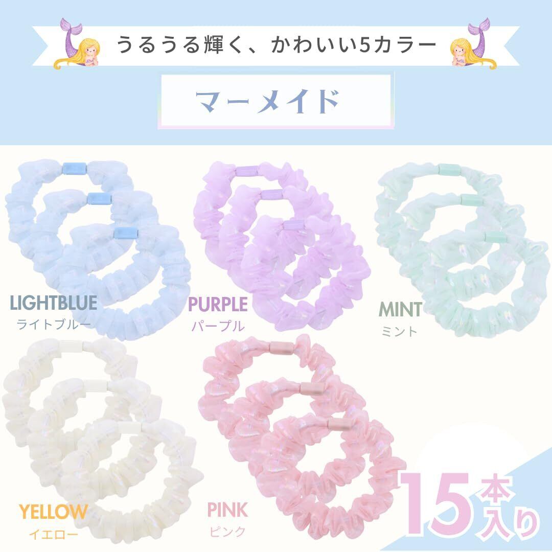 【商品仕様&セット内容】 セット内容:5カラー × 各3本=15本入り カラー展開: └ プリンセス:ピンク/パープル/ライトブルー/ミント/イエロー └ マーメイド:ピンク/パープル/ライトブルー/ミント/イエロー サイズ:内径 約4.5cm / 太さ 約7mm 特徴:透け感オーガンジー風素材/ふんわり軽やか/やさしいつけ心地/写真映え/選べるカラータイプ 用途:日常使い・イベント・プレゼント・リンクコーデ・発表会・七五三などに