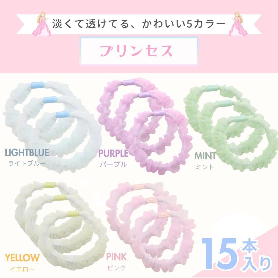[iijo] ヘアゴム しゃり子 15本セット ヘアアクセサリー おしゃれ 髪ゴム 痛くない しゃり子 (プリンセス)