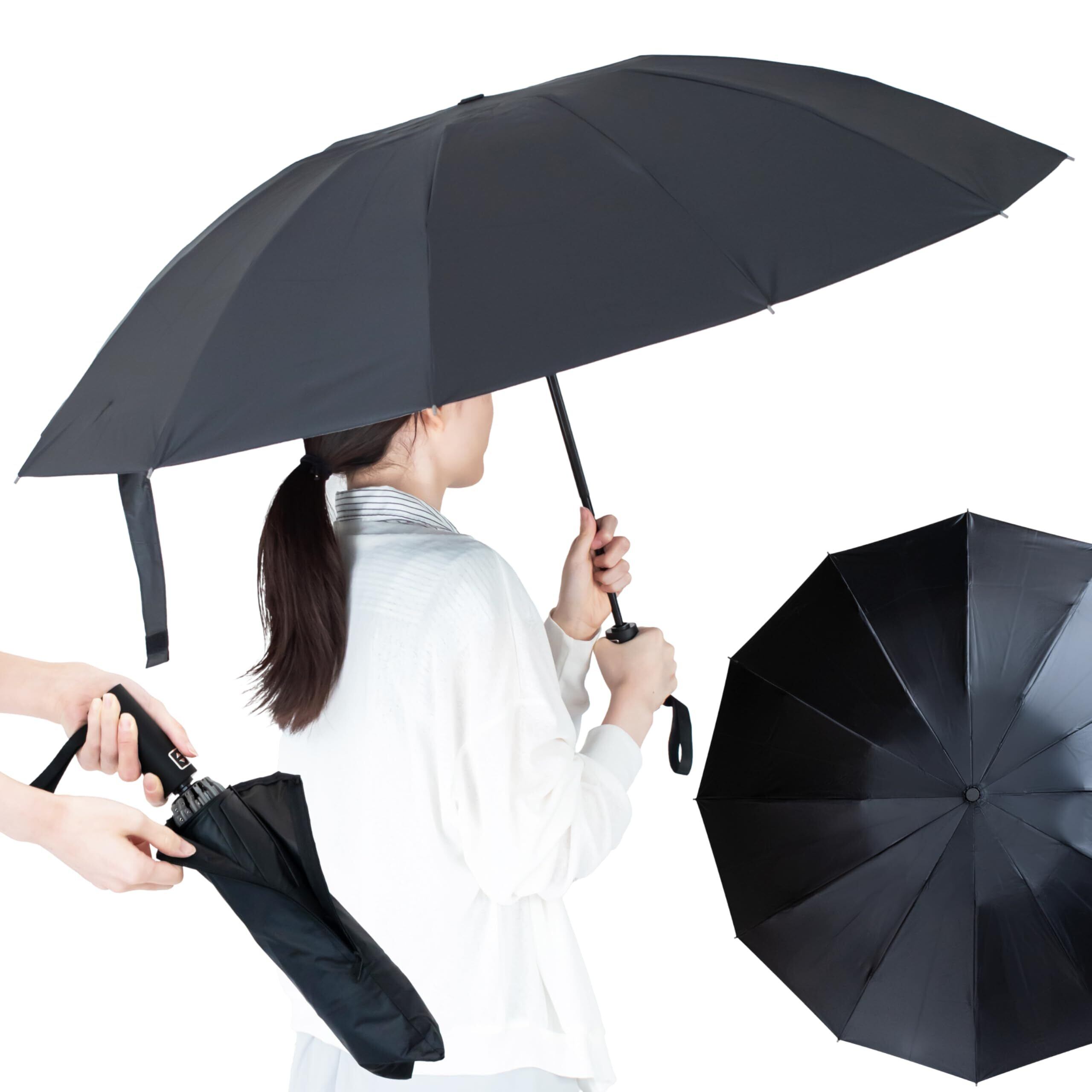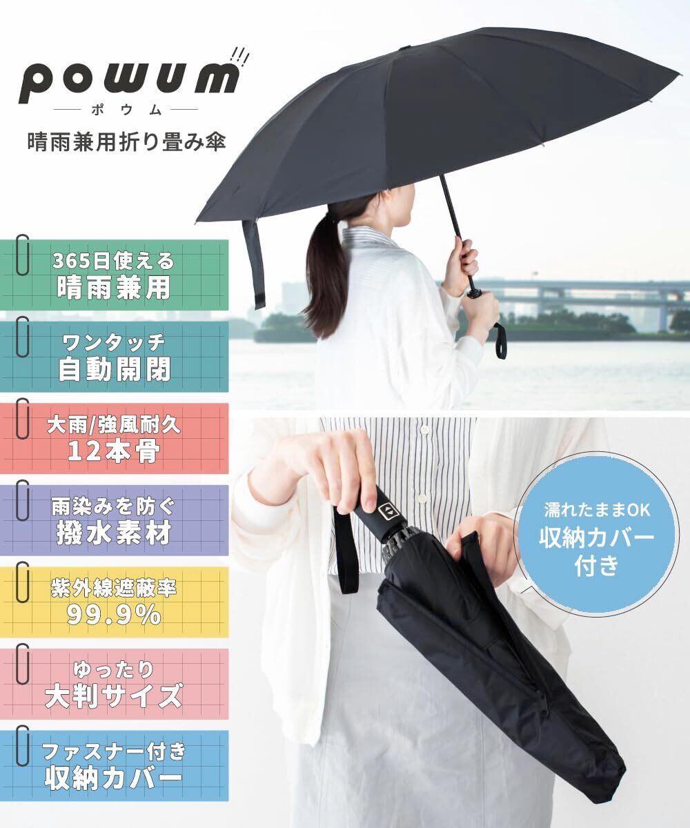 【強化12本骨・耐風傘・ワンタッチ瞬間開閉】【逆折り式&サイドファスナー付き傘袋で収納も楽々】 自動開閉 逆折り式 晴雨兼用 折りたたみ傘 耐風 耐久 耐水 撥水 遮光 遮熱 強風対応 豪雨対応 密度ポリエステル UVカット 99.9% 日傘 紫外線対策 男女兼用 大判サイズ メンズ レディース
