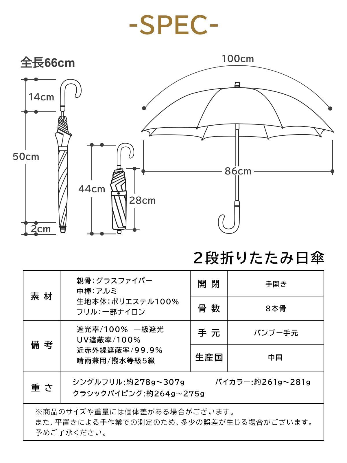 KIZAWA 日傘 折りたたみ 二段式 uvカット 100 遮光 長傘 逆折り 2段折り 完全遮光 レディース 5級撥水 折り畳み 軽量 遮熱 晴雨兼用 かわいい 母の日のプレゼント バンブー 持ち手