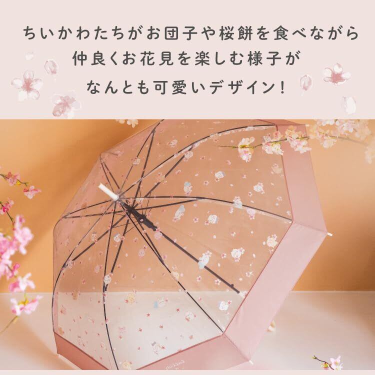 Wpc. [ビニール傘]ちいかわ お花見 ピンク 長傘 雨傘 親骨61cm 長く使える 大きい ジャンプ ハチワレ うさぎ モモンガ 古本屋 カニちゃん 桜 花柄 可愛い キャラクター コラボ ナガノ 映え 通勤 通学 PT-CK07-001