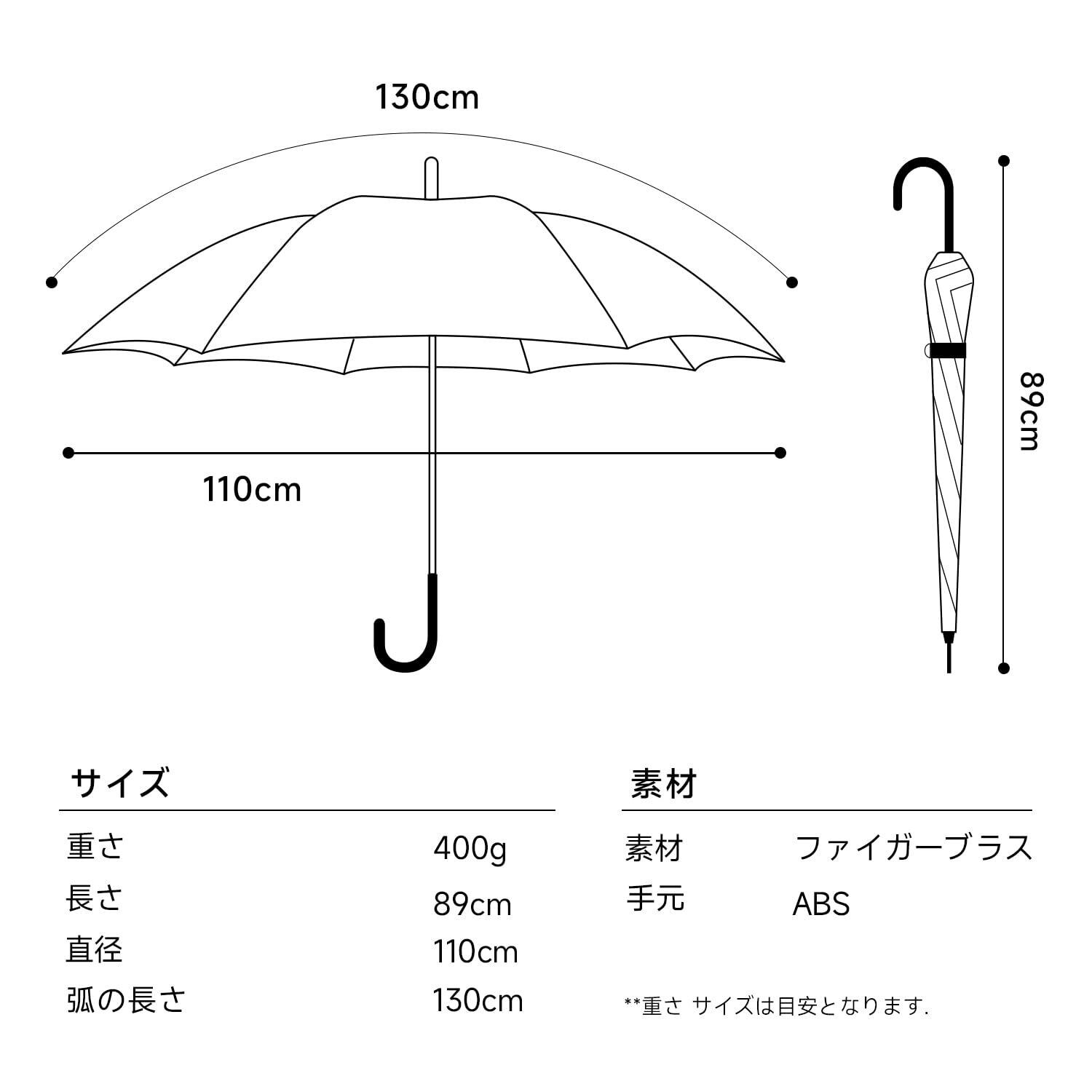 レディース 長傘 おしゃれ 丈夫 ジャンプ傘 超軽量 UVカット ワンタッチを自動的に開く 超撥水 晴雨兼用傘、全長約89cm、親骨約63.5cm、直径約117cm、重量約450g
