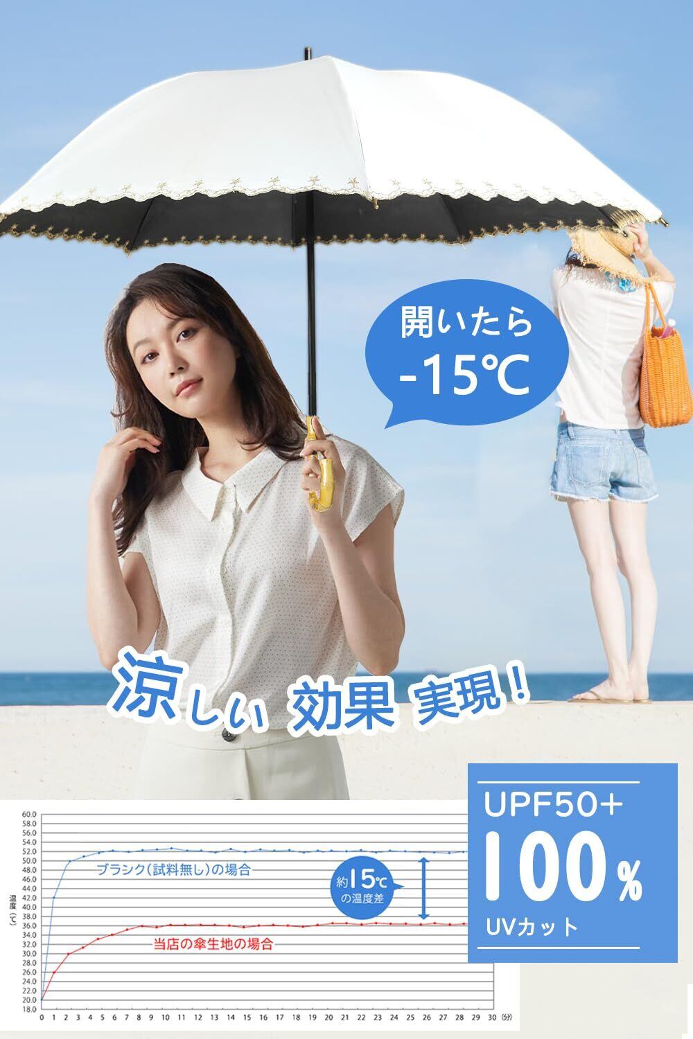 ✦【可愛くオシャレ・上品なデザイン・軽量日傘】長傘は気分が上がる配色・ホワイト、フラワー、刺繡など落ち着きのある色味で飽きのこないベーシックなデザイン、どんなシチュエーションやスタイルにも合わせやすい。まるくかわいいシルエットが魅力で、女性らしいエレガントな雰囲気を醸し出します。スリム型のショット傘なので、収納しやすく携帯便利です。誕生日、母の日、アウトドア、通勤、通学、贈り物、撮影会、結婚式、旅行、結婚記念日、就職祝い、暑中見舞い、還暦祝い、寿祝いなどのプレゼントとして最適。【商品詳細】サイズ:親骨:(約)50cm 使用時 : (約)直径90cm 材質: ポリエステル / バンブー(竹) / アルミ/重量: (約)/250g 遮光率:100% UV遮蔽率:100% UPF評価:UPF50+。