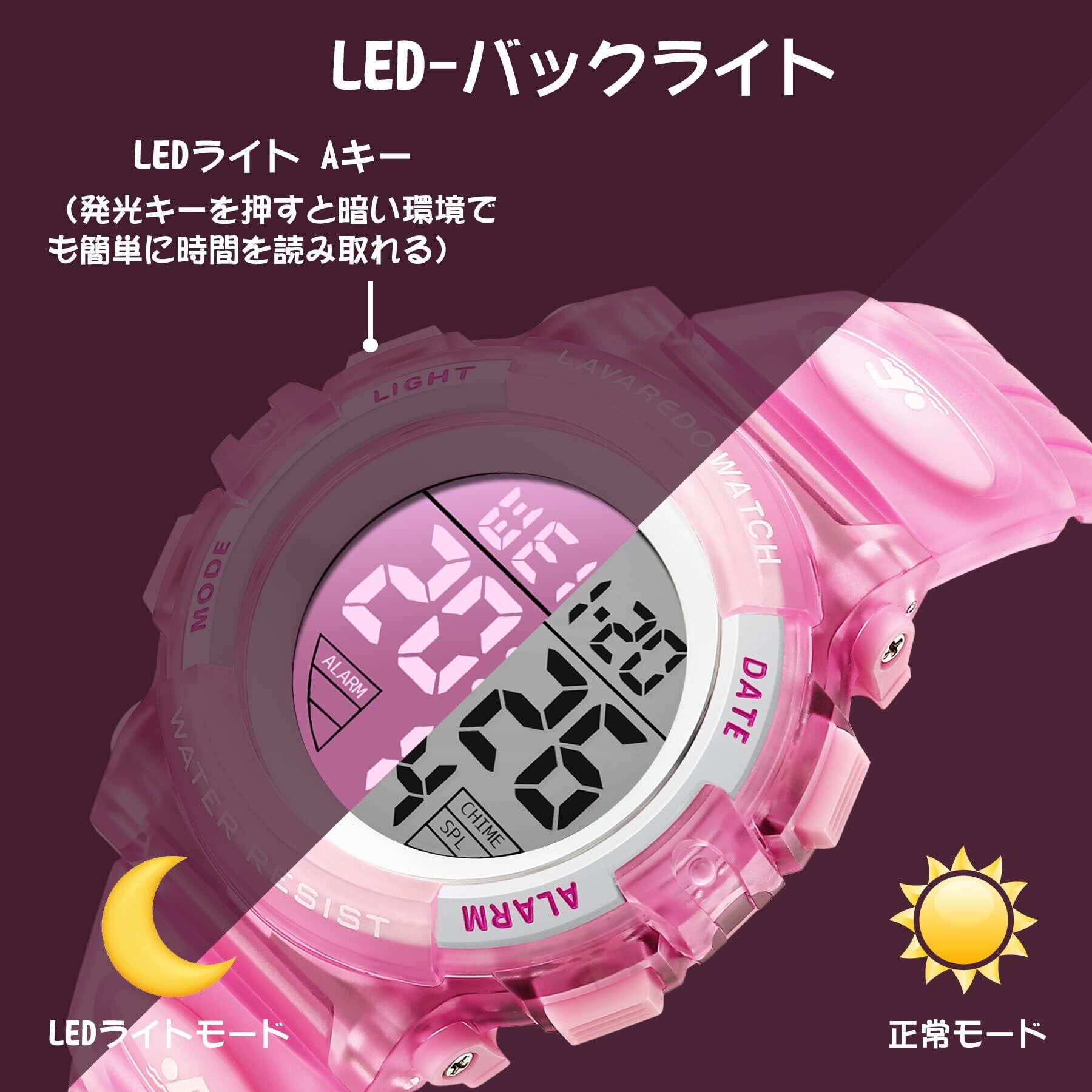 子供腕時計 キッズ デジタル 女の子 スポーツウォッチ ガールズ 防水腕時計 多機能 50メートル防水 LED表示 アラート ストップウォッチ 日付 曜日 アウトドア 入学祝い 女の子 男の子 誕生日 プレゼント 取扱説明書付き