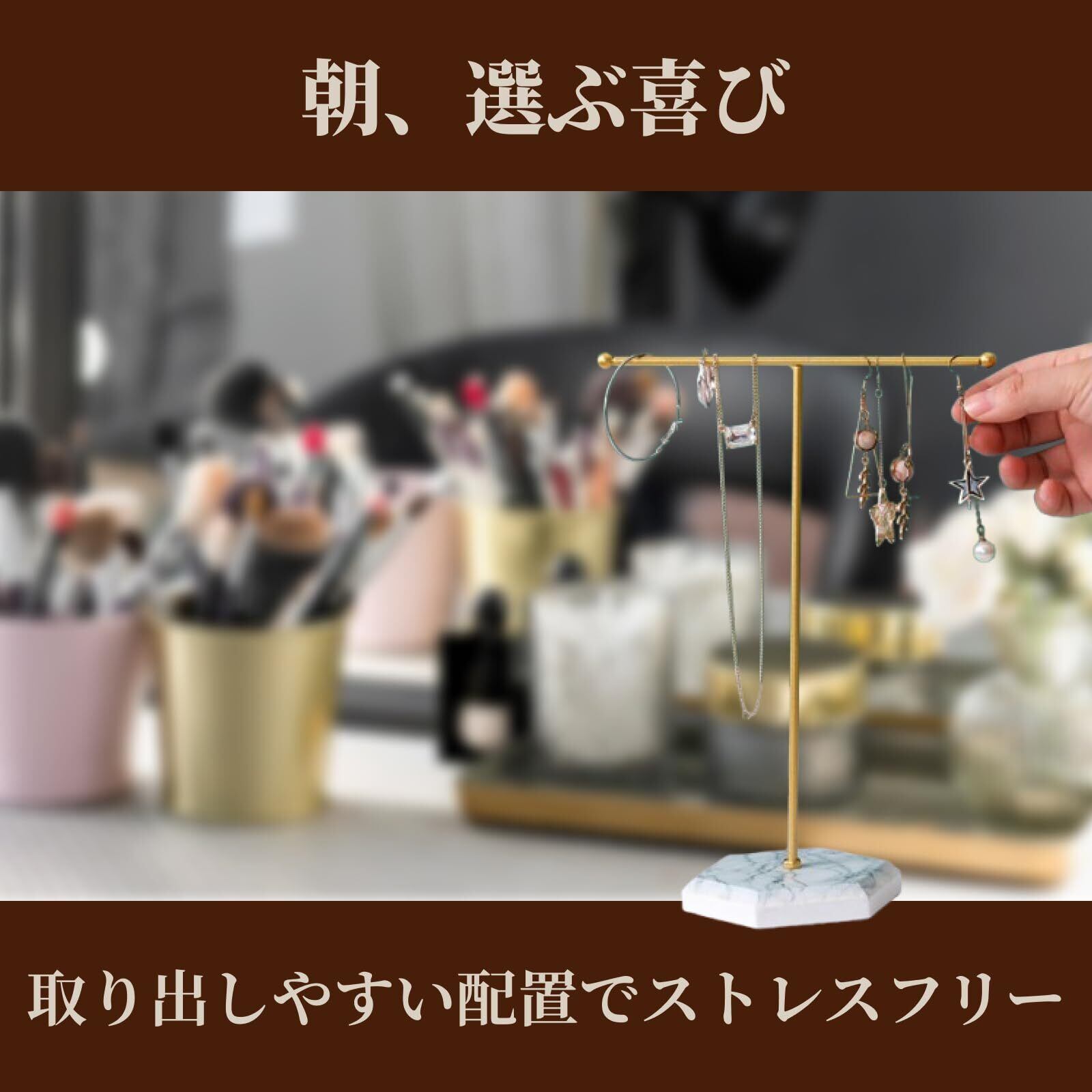 【安定感のある構造】しっかりとしたベースで倒れにくく、重さのあるジュエリーも安心して収納可能です。日常使いに最適です。