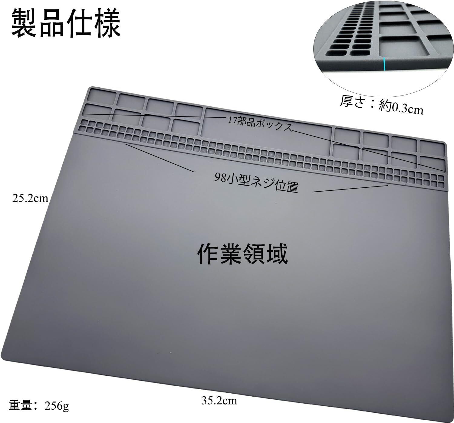 3. 滑り止め&広く使用されている:シリコンリ耐熱作業マットの表面と裏面の両方に滑り止めデザインが採用されており、デスクトップ上で滑りません。これは、電子機器アセンブリまたは回路基板および電子機器の修理をはんだ付けするための理想的な修理ツールであり、特にスマートフォン、コンピューター、タブレット、スポーツウォッチ、IC回路基板、およびその他の電子機器の修理に適しています