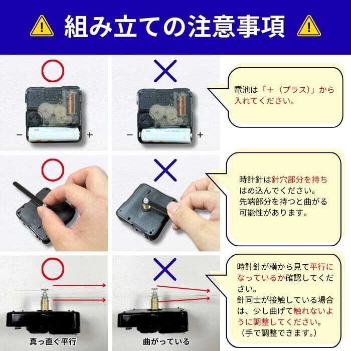 ※時計針取り付けの際や取り出しの際に時計針が曲がることがあります。針同士が接触している場合は、手で少し曲げて針同士が触れないように調整してください。