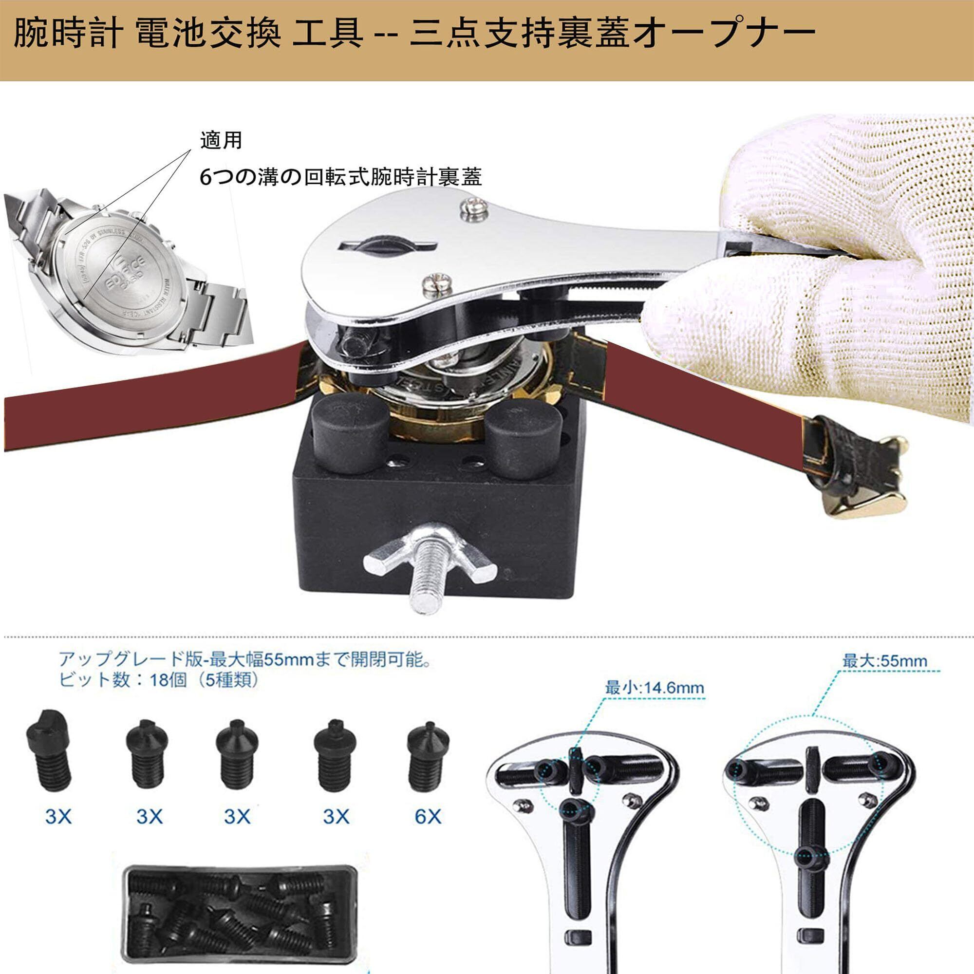 腕時計 電池交換 工具セット | 時計修理キット(SR621SW電池付属)| ベルト調整/交換・裏蓋開閉対応 | 精密ドライバー・ピン抜き工具・収納バッグ付き | 日本語説明書
