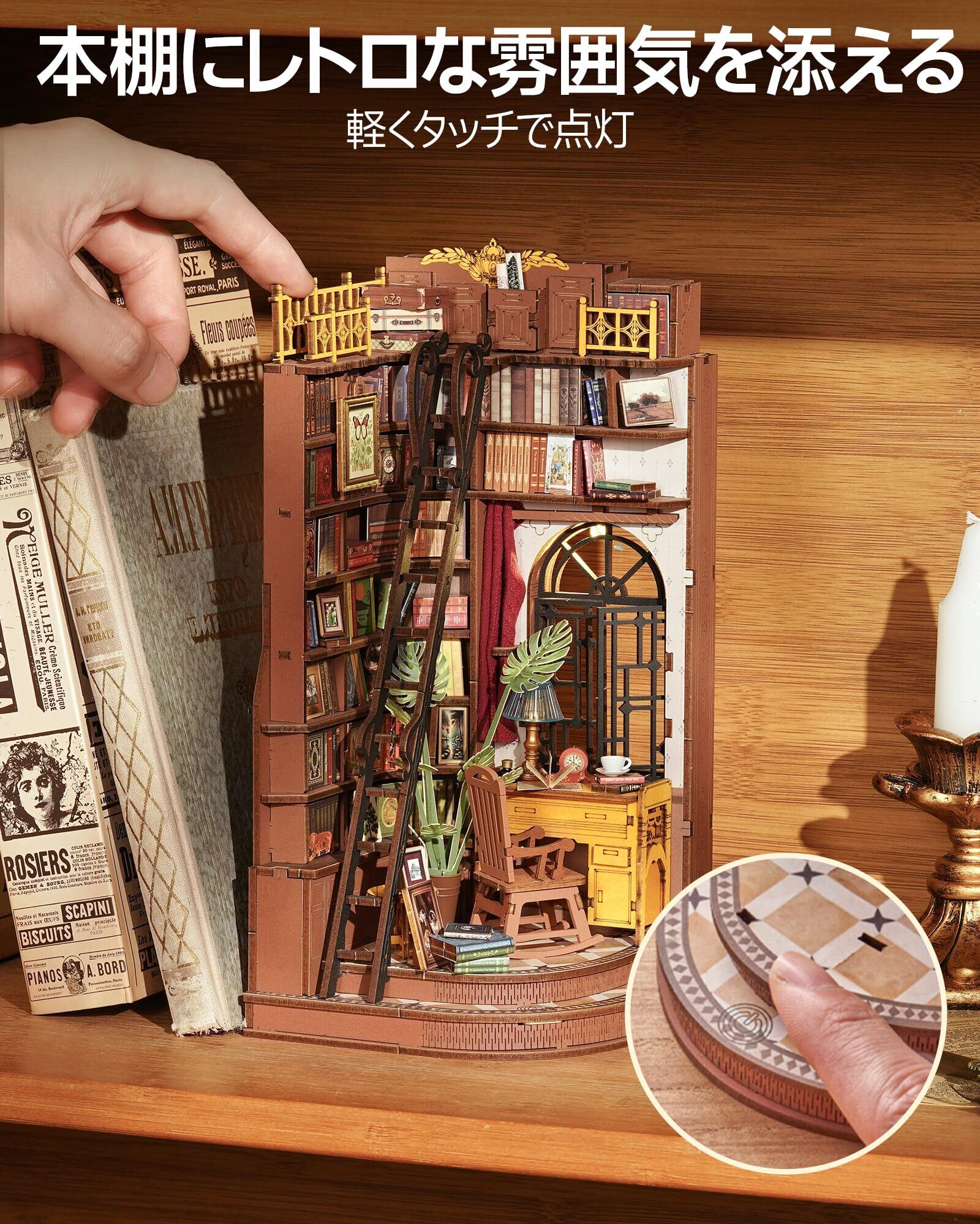 【人気商品】ROBOTIME DIY ブックヌック キット ドールハウス キット ミニチュア ハウス キット 3d ウッド パズル 木製 手作り クラフト ブックスタンド 組み立て本棚装飾 初心者中学生も簡単組立 知育玩具 プレゼントに最適 ブックヌックシリーズで没入感のあるミニワールド 公式販売-TGE02