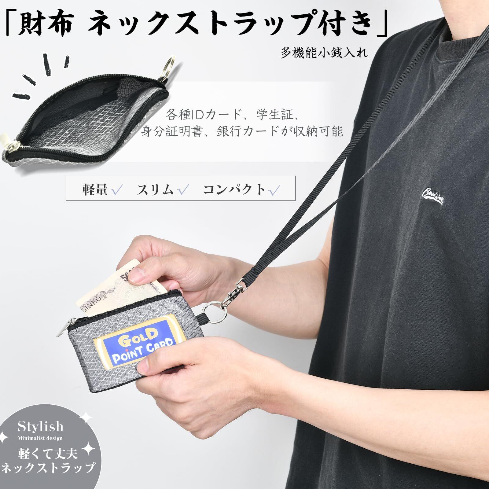 【2022最新】パスケース 小銭入れ 小さい ネックストラップ付き 子供用財布 男の子 小銭ケース コインケース ミニ アウトドア 首掛け 財布 IC ID カード入れ ダークグレー