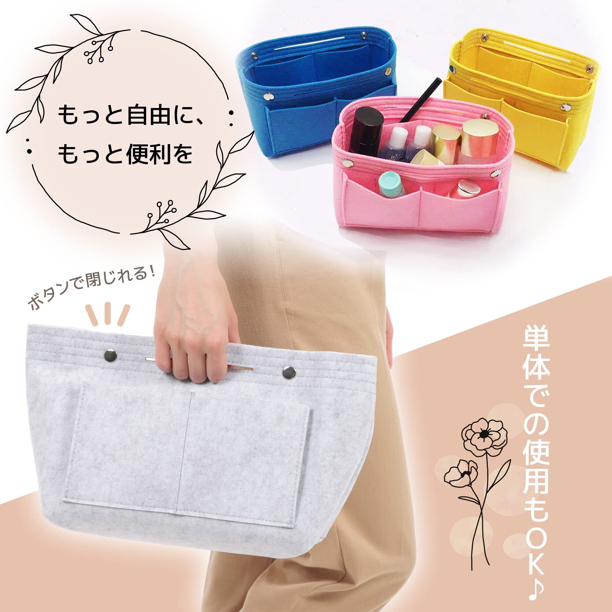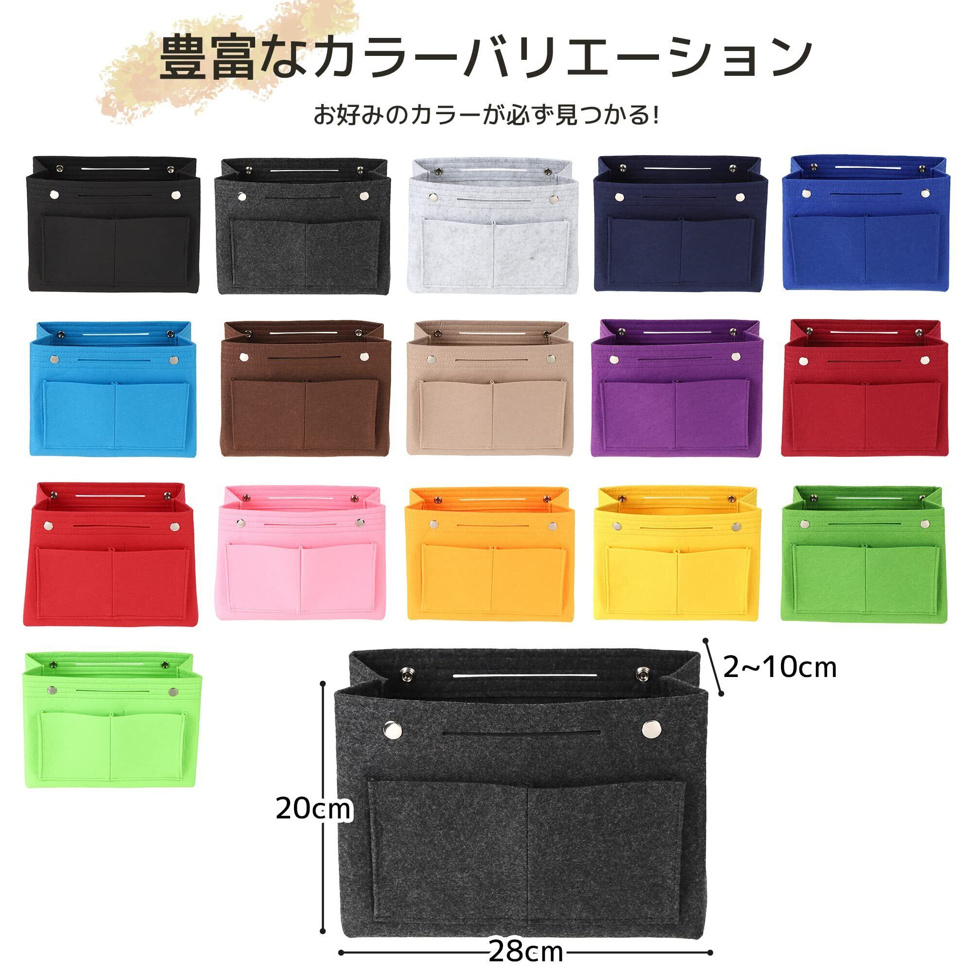 バッグインバッグ 軽量 自立式 フェルト 【バッグを傷つけない】柔らか素材 衝撃吸収 大容量 整理整頓 多機能 化粧品ポーチ ファスナー付き インナーバッグ レディース メンズ 男女兼用 (ダークグレー)