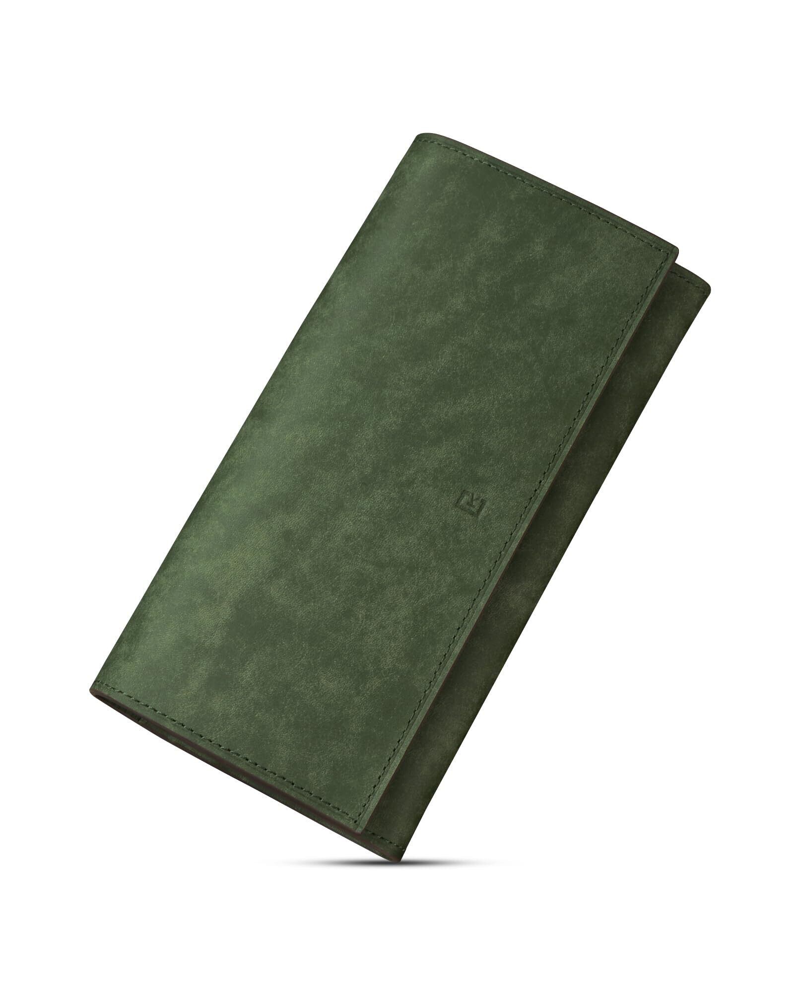 [Kawaoto] 財布 メンズ 長財布 本革 プエブロレザー 大容量 カード18枚 かぶせ型 小さい長財布 ファスナー 春財布 プレゼント (緑青色)