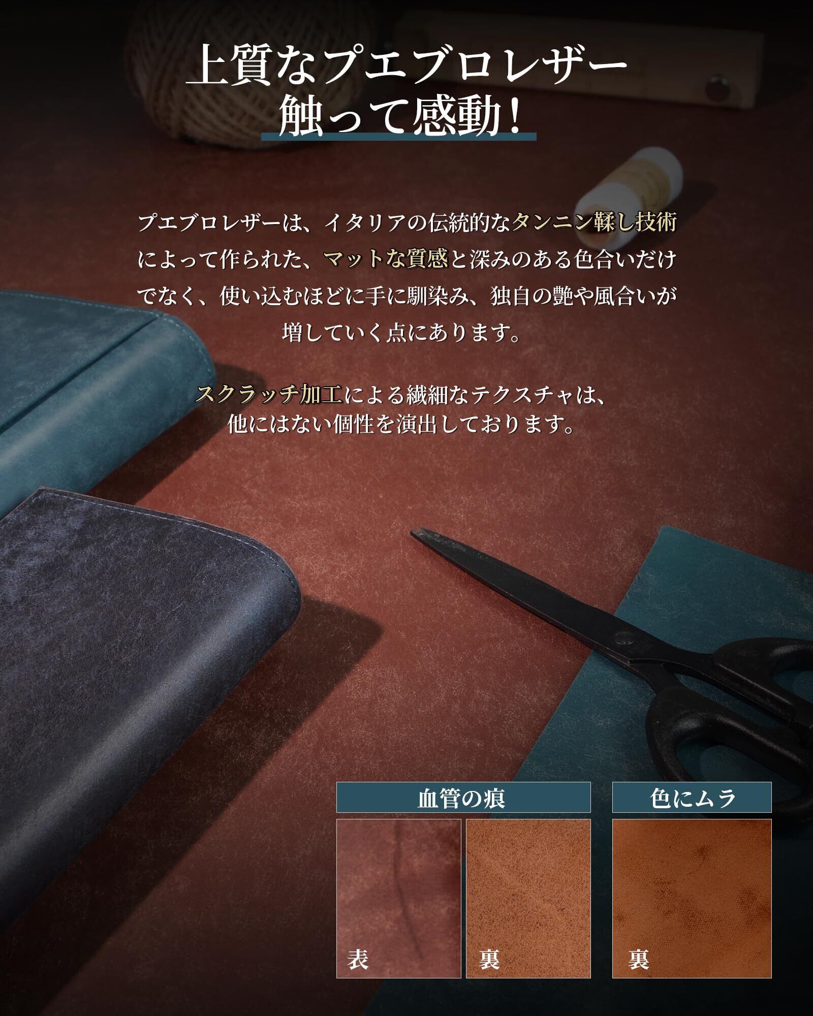【財布 メンズ 本革】プエブロレザー財布は、少しマットな仕上がりが特徴で、独特な風合いがあります。最初は少し硬さを感じるかもしれませんが、使い込むことで徐々に柔らかくなり、手になじんでいきます。時間が経つごとに、色味が深まり、経年変化が楽しめます。