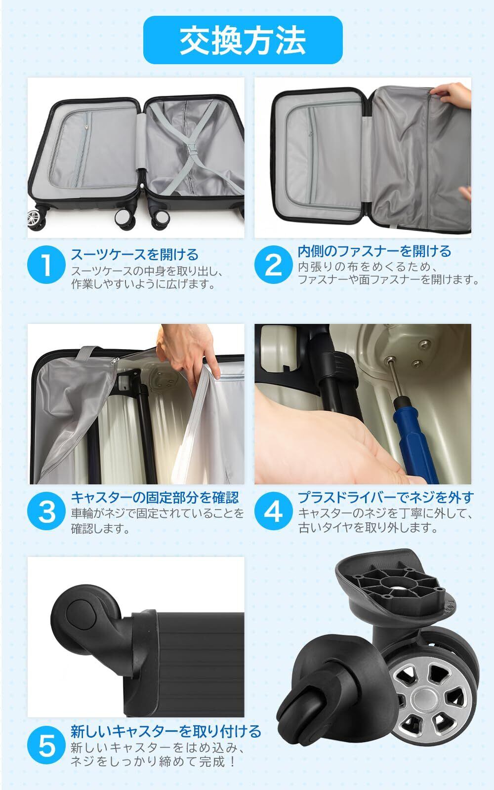 【買い替え不要!】 スーツケースを買い替えるよりも、キャスターを交換すればずっと経済的!業者修理よりも低コストで済み、お気に入りのスーツケースを長く大切にできます。