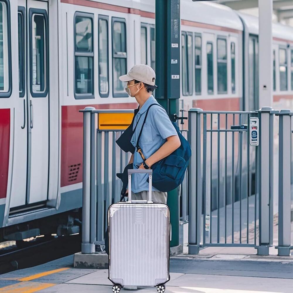 【スーツケースカバー】対応スーツケース高さ:47~50cm(ホイール除く)、厚さ:22~24cm、幅:33~36cm。ご購入前に必ずスーツケースのサイズを測定してください。 【PVC素材】分厚い防水PVC製のスーツケースカバーで、スーツケースをキズ、液体のこぼれ、空港での取り扱い時の衝撃から保護します。 【開口部デザイン】トップハンドル開口部はラッチハンドルに便利で、サイドハンドル開口部はグリップ力を提供します(注:ハンドル開口部はスーツケース正面右側パネルに位置します)。 【簡単装着】マジックテープ付きボタンで数秒で簡単に装着・脱着可能。トップハンドルと底部のマジックテープがスーツケースをしっかり包み込み、激しい輸送中でもずれ落ちる心配がありません。 【透明デザイン】空港での手続き時にスーツケースを簡単に見分けられる透明設計。空港で手荷物を見失う心配がなくなります。休日の旅行に最適です。