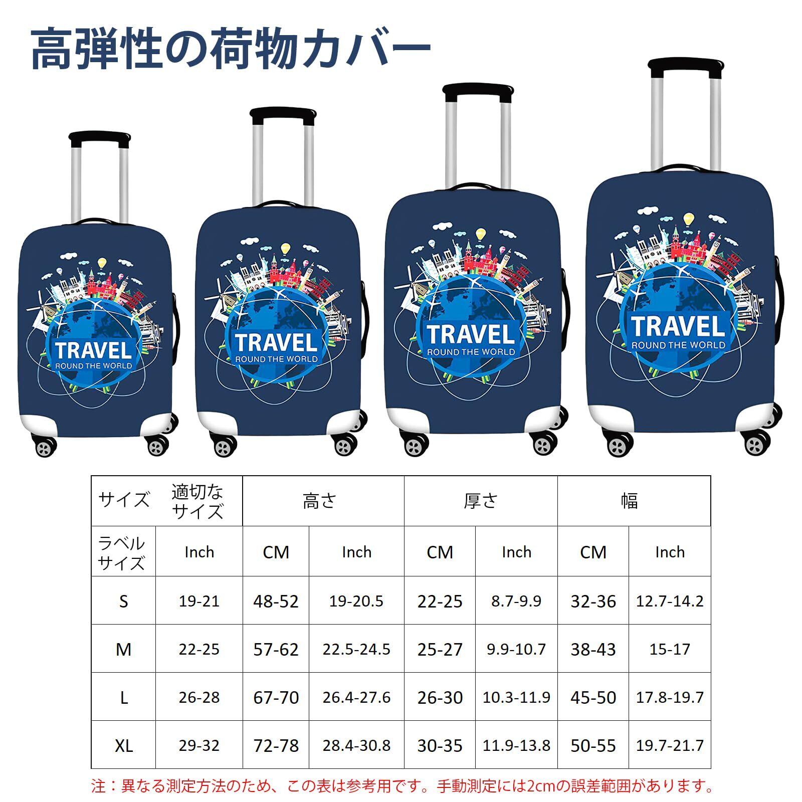 豊富なサイズ:S、M、L、XLの4サイズをご用意しており、当社のスーツケース保護カバーは、ほとんどの主要ラゲッジブランドに適合します。荷物のサイズを慎重に測り(サイズの詳細は最後の画像を参照)、荷物の高さを測る際は車輪の高さを除外してください。