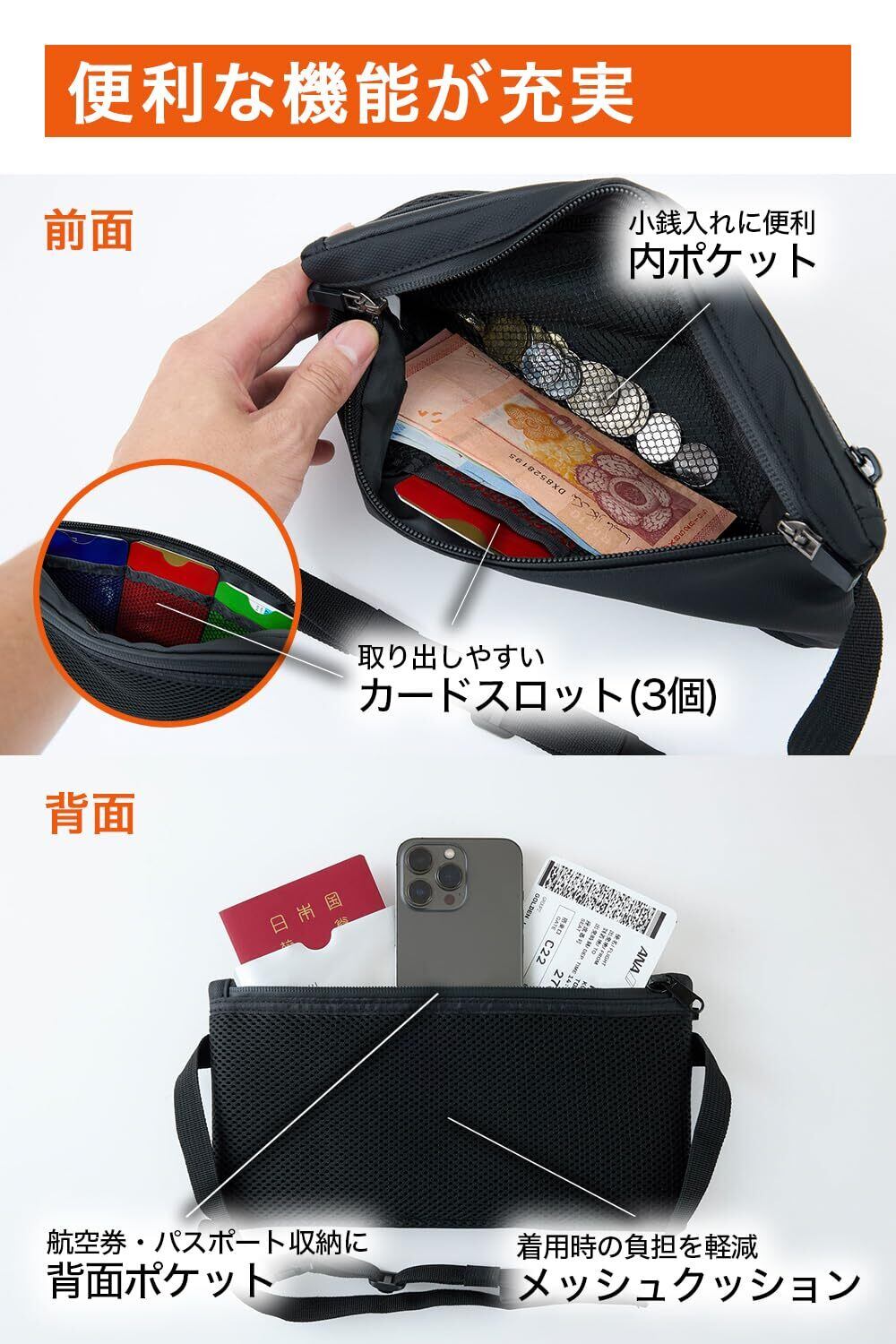セキュリティポーチ 【ベストバイ獲得】 ウエストポーチ 防水 パスポートケース スキミング防止 海外旅行 バッグ 防犯 ブラック