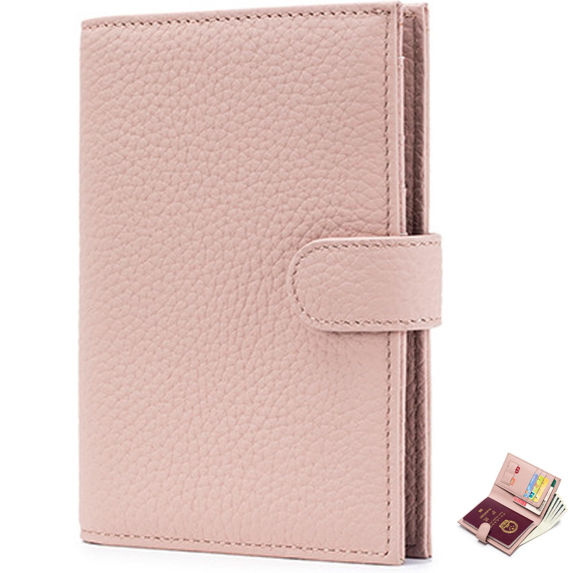 [RenLianyi] パスポートケース スキミング防止 本革 二つ折り 薄型 パスポートカバー 財布 一体型 軽量 おしゃれ パスポート カードケース 多機能収納ポケット付き 国内海外旅行用品 トラベルウォレッド 航空券入れ 海外出張 贈り物 コンパクト ライトピンク