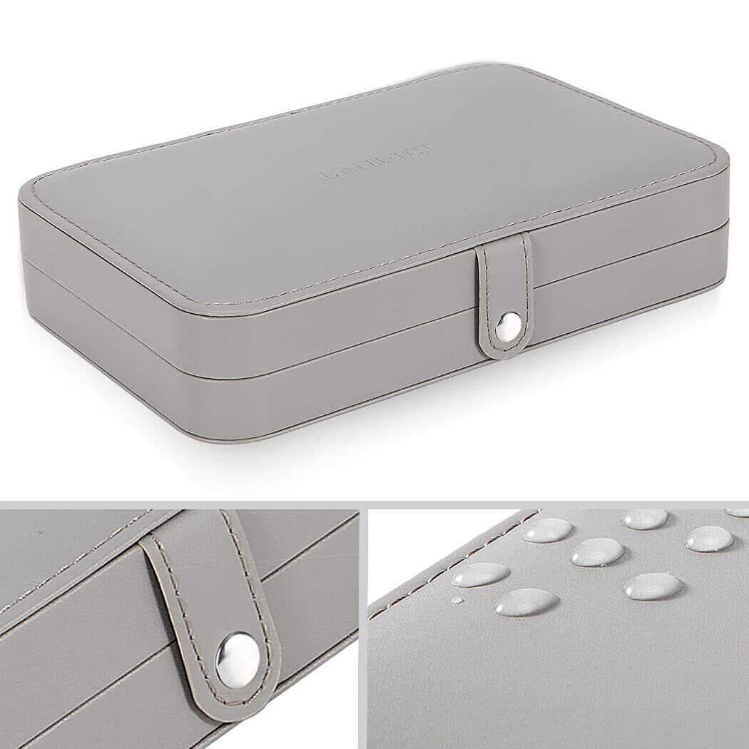 LANDICI ジュエリーボックス PUレザージュエリーケース ジュエリーボックス 指輪置きジュエリー収納ケース 携帯用 持ち運び 仕切り付き宝石箱 jewelry box organizer じゅえりーぼっくす ネックレス イヤリング ピアス ブレスレットなど小物入れアクセサリー ボックス グレー