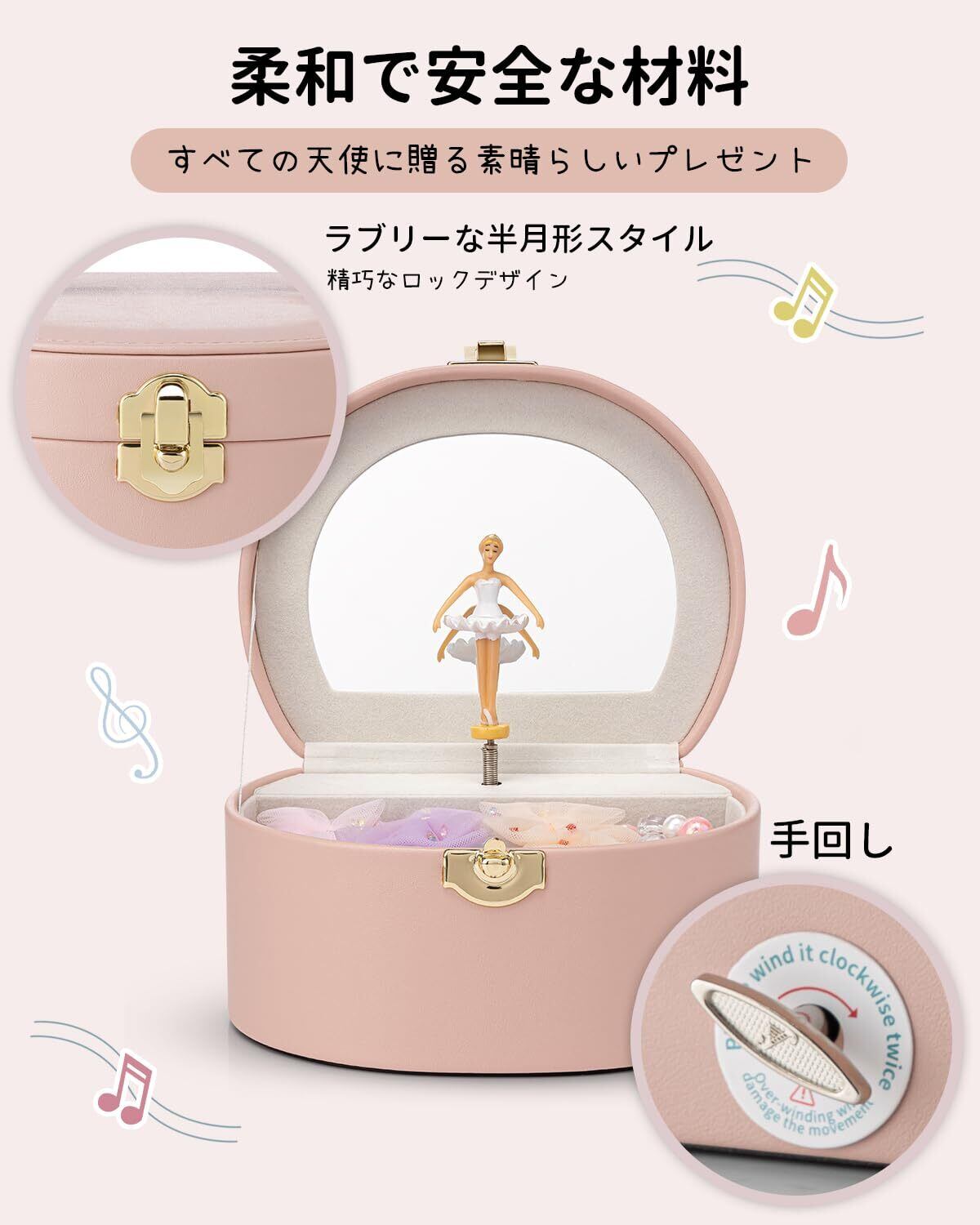 【特価商品】Vlando 誕生日プレゼント オルゴール 娘へのプレゼント ジュエリーボックス 半円形 鏡付き オルゴール プレゼント子供 携帯用 バレエ発表会 プレゼント プリンセス 三歳以上(ピンク)