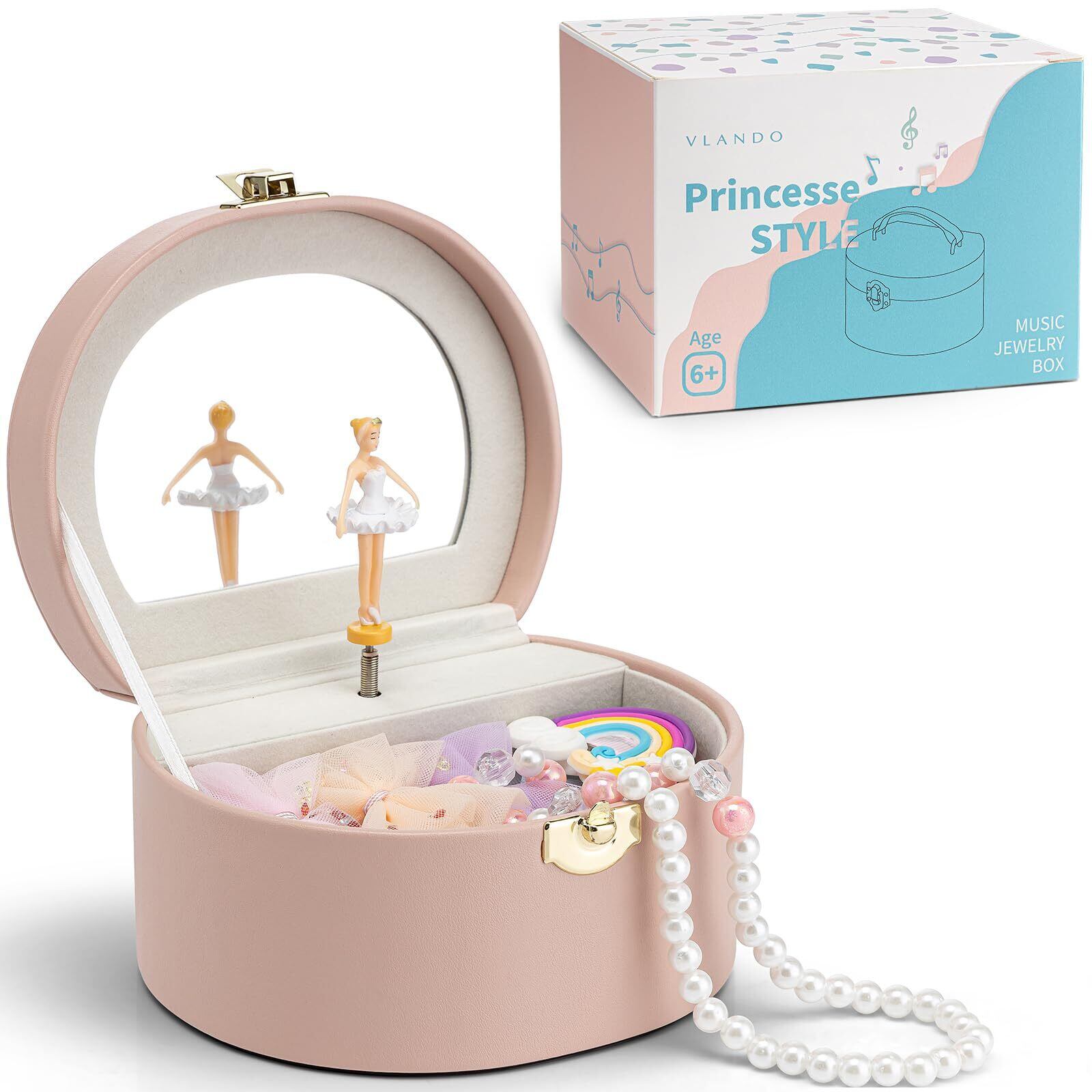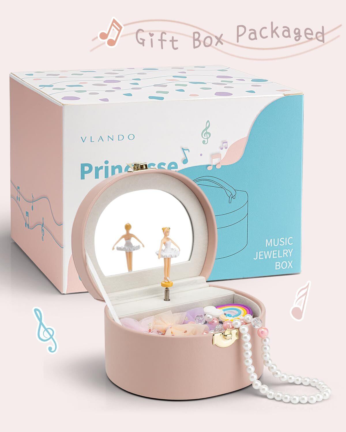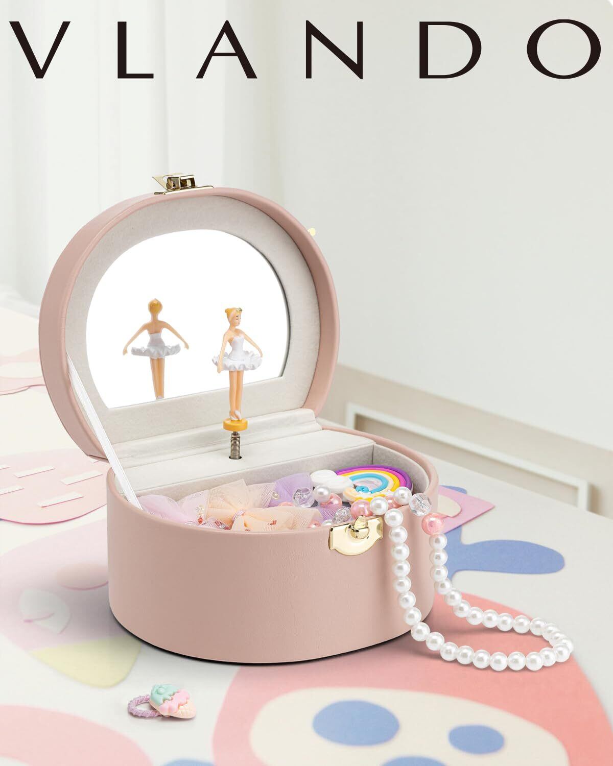 Vlando 誕生日プレゼント オルゴール 娘へのプレゼント ジュエリーボックス 半円形 鏡付き オルゴール プレゼント子供 携帯用 バレエ発表会 プレゼント プリンセス 三歳以上(ピンク)