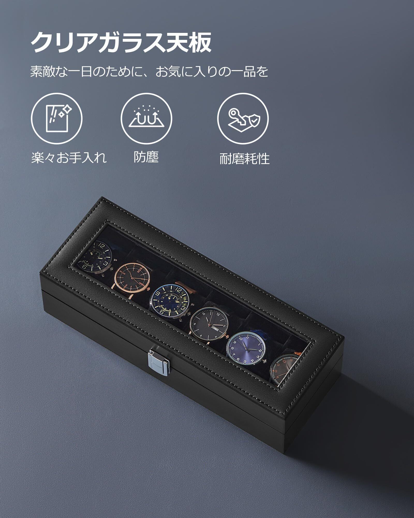[透明ガラスカバー] すべての時計が見えるので、見てみるだけで、着用したい時計をすばやく選択できます。 さらに、蓋は丈夫でお手入れが簡単です。