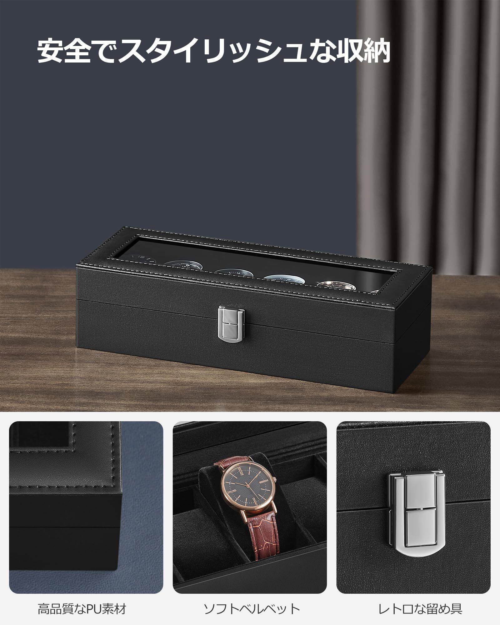 【在庫処分】SONGMICS 時計ケース 6本 PU製 腕時計収納 コレクションケース 透明窓付き ウォッチボックス アクセサリー保管 おしゃれ 父の日プレゼント メンズ レディース 誕生日お祝いギフト ブラック JWB06B01
