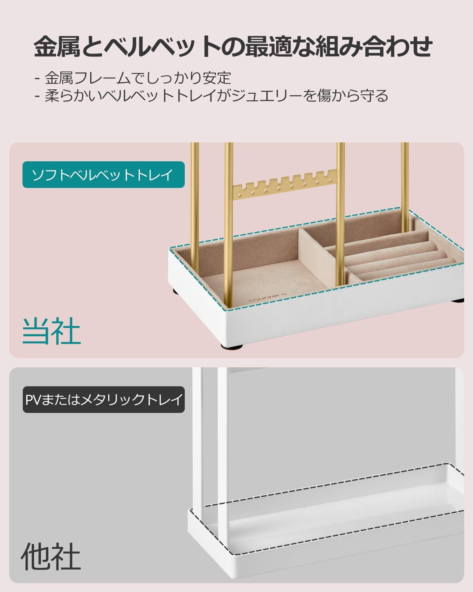 【頑丈な金属製+保護ベルベット】しっかりした金属フレームで、ジュエリーをたくさん収納しても安定。ベースはベルベットカバー付きで、大切なアクセサリーを傷から守ります