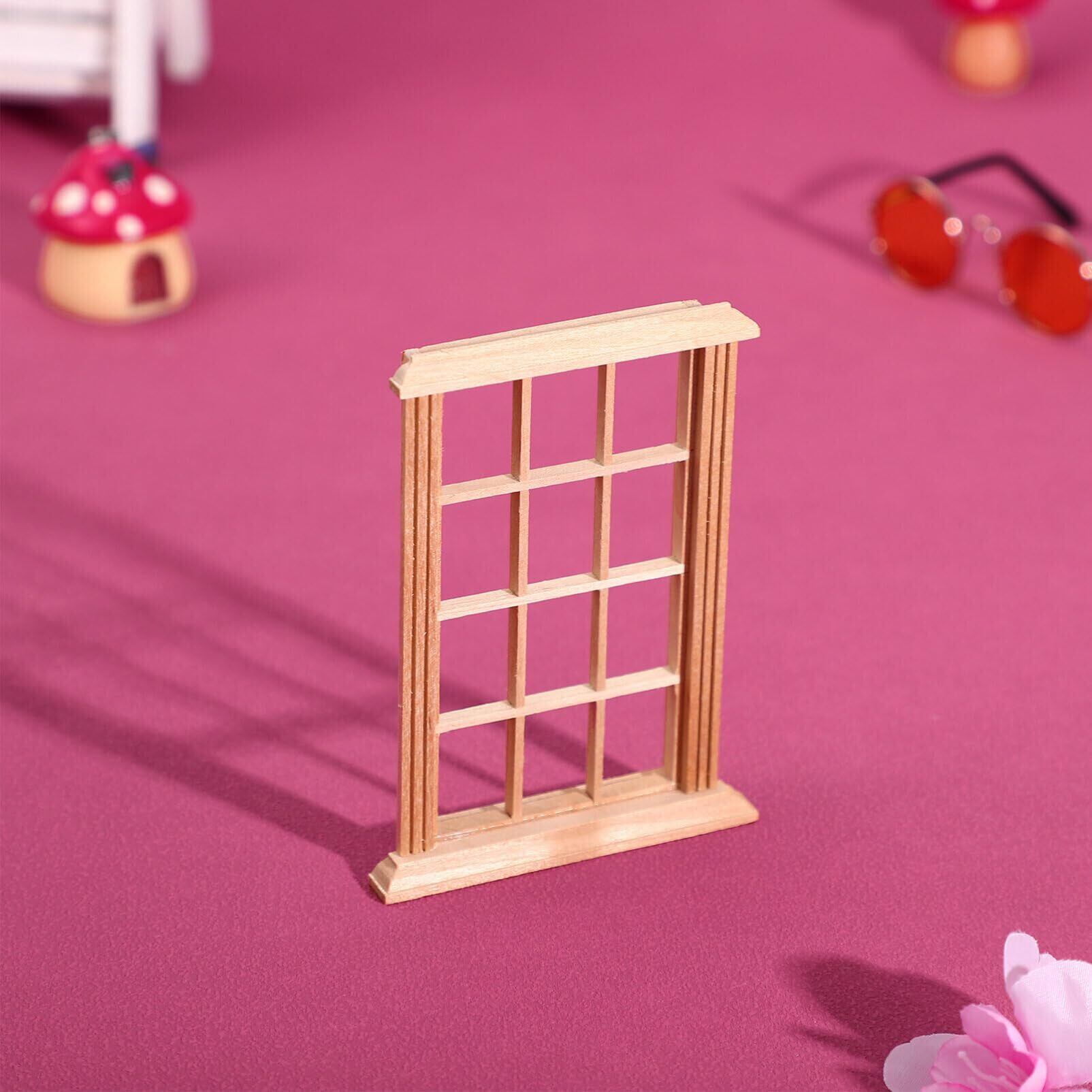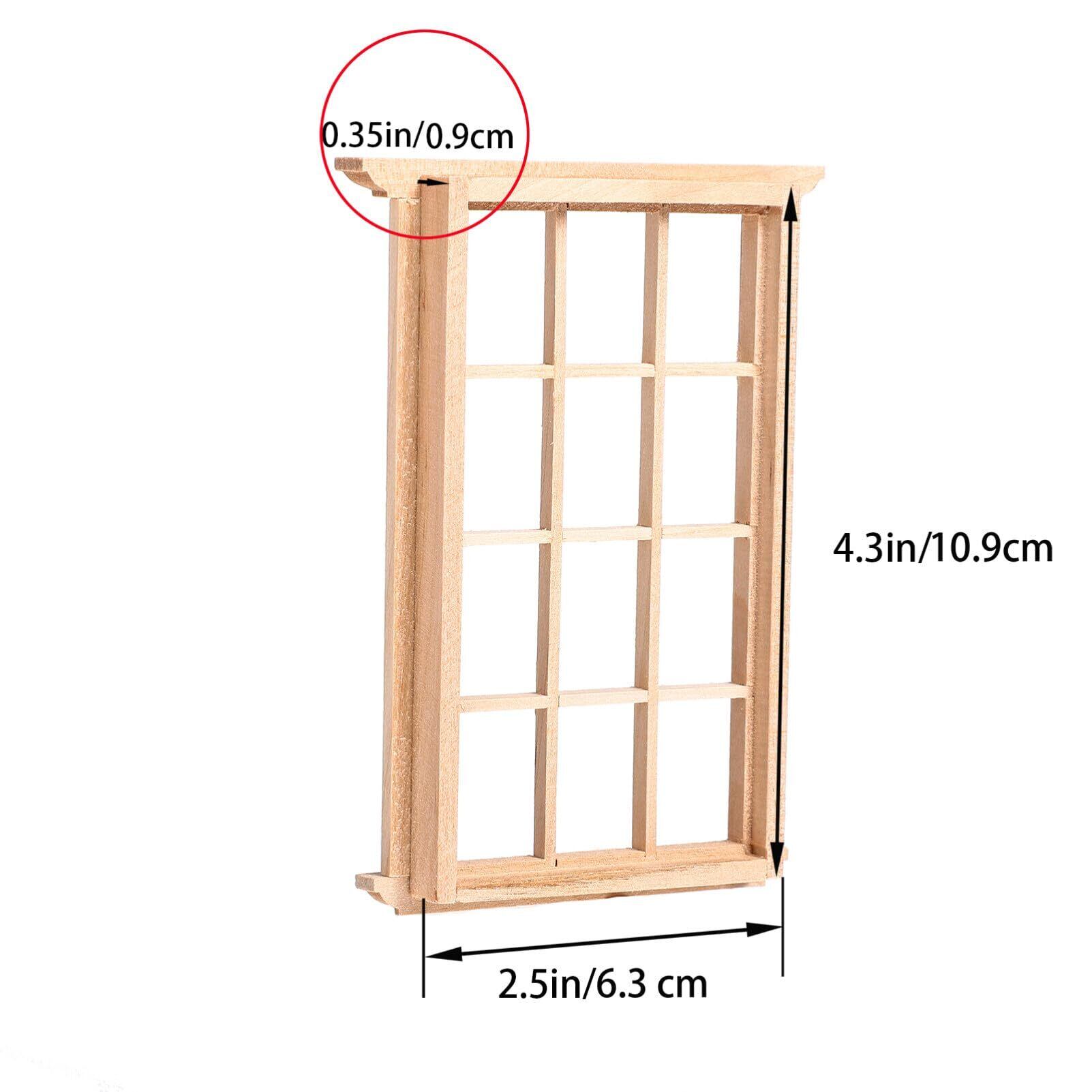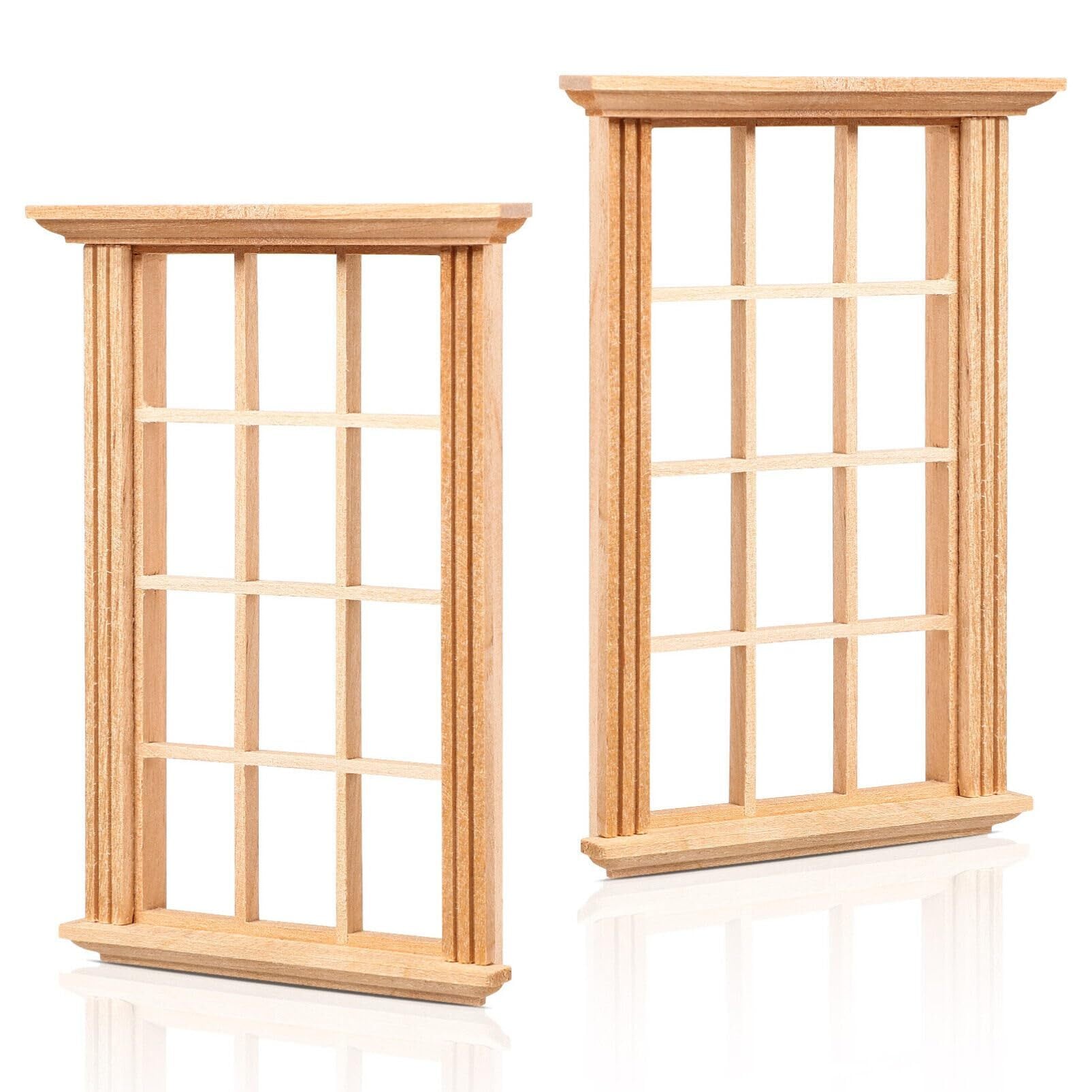 ミニチュア木製窓枠 1/12 スケール ドールハウス窓モデル DIY 妖精の家の家具アクセサリー 2 個。