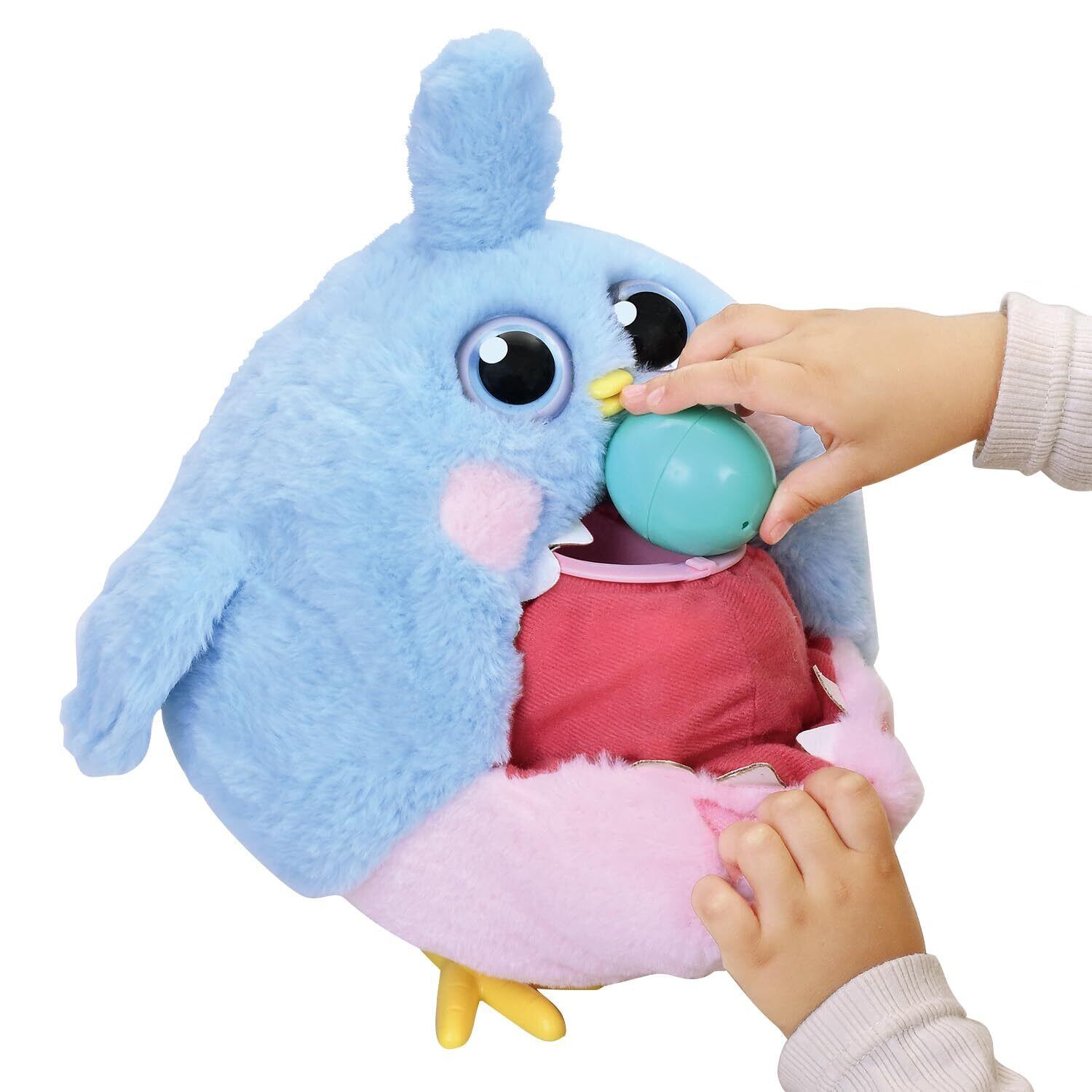秘密の口を開けて卵を食べさせてあげると、さまざまな音を立てて食べてくれます!