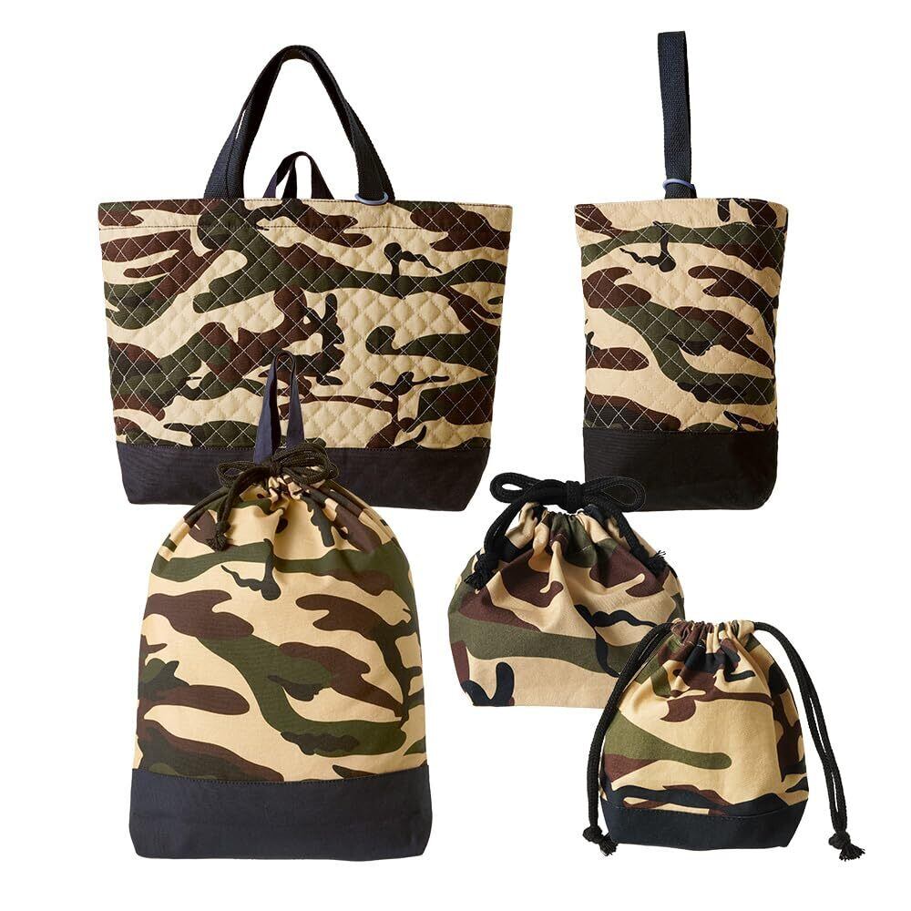 アンジュスマイル 入園 入学 巾着袋 5点セット 【B】カモフラ バッグ レッスンバッグ スクールバッグ スクバ 布 布製 お弁当袋 体操袋 手提げ袋 上履き袋 小学生 保育園 入学 ピアノ 可愛い