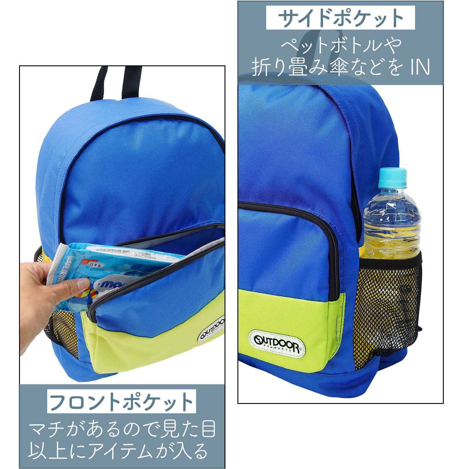 [アウトドアプロダクツ] リュック A4収納 キッズ ジュニア メッシュポケット ラフ 無地 ベーシック シンプル