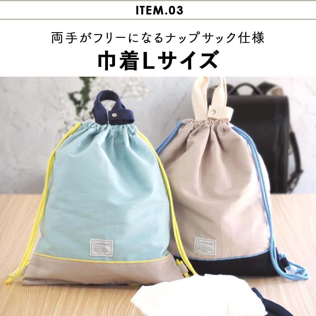通園通学にマストな袋物を、お揃いデザインの5点セットに。 統一感のあるデザインで、お子様もひと目で自分の物と分かりやすくなります。 セット内容は、レッスンバッグ、シューズケース、体操着入れにぴったりな巾着Lサイズと、 お弁当入れに使用できる、保冷保温仕様の巾着Mサイズ、学校給食で使うランチョンマットや歯ブラシコップ入れにもなる巾着Sサイズの5点。 小さなお子様でも扱いやすい、丈夫でしっかりとした生地を使用しています。 低学年から高学年までお使いいただける、シンプルで飽きのこないデザイン。 通園通学だけでなく、習い事やお出掛け、遠足、学童などマルチに活躍してくれるアイテムです。