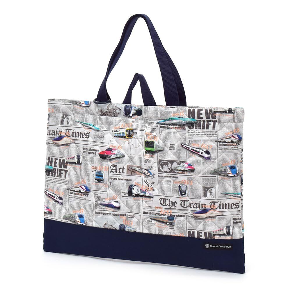 【新着商品】COLORFUL CANDY STYLE レッスンバッグ 男の子 子供用 キルティング 手提げ 通園 お稽古バッグ 新幹線と鉄道ワールド・グレー N0249500