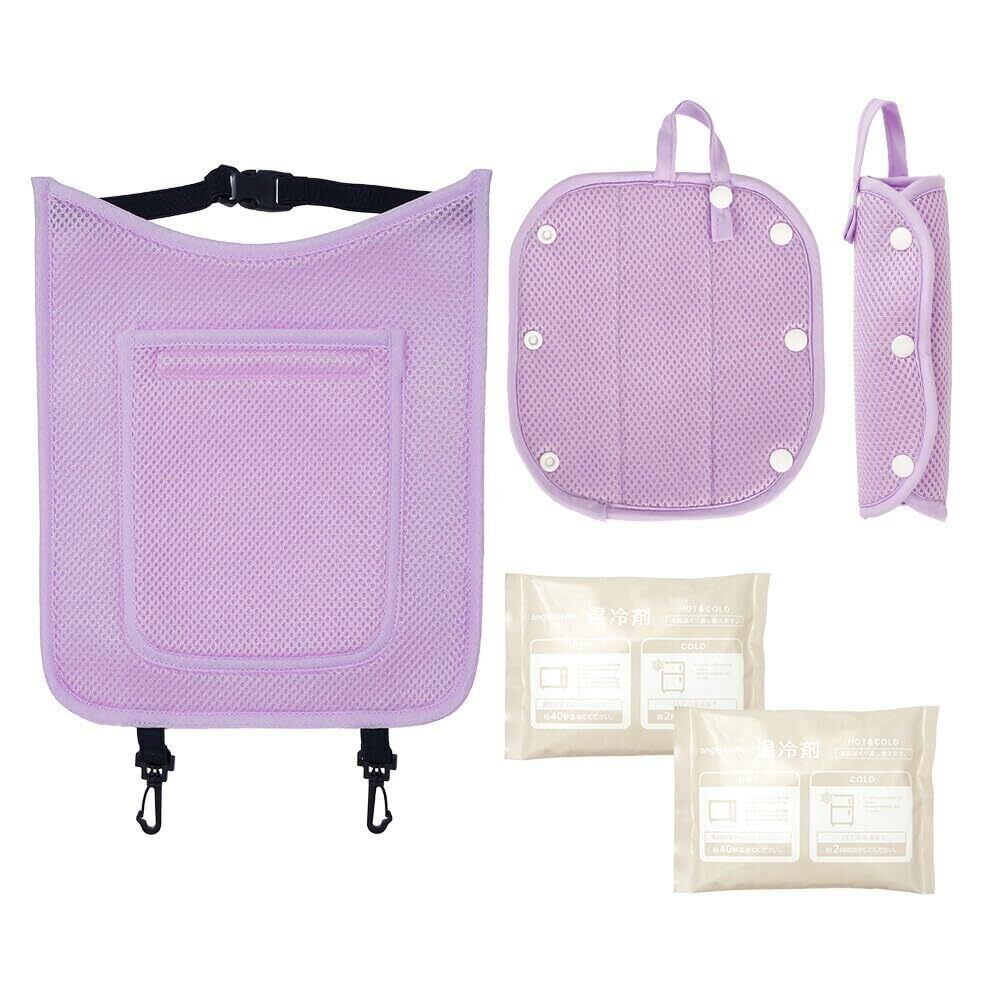 通気&クッション性の高いメッシュ素材の背中パッドとショルダーパッド。付属の温冷剤が、ポケットにすっぽり入る! 繰り返し使えてとってもエコ。
