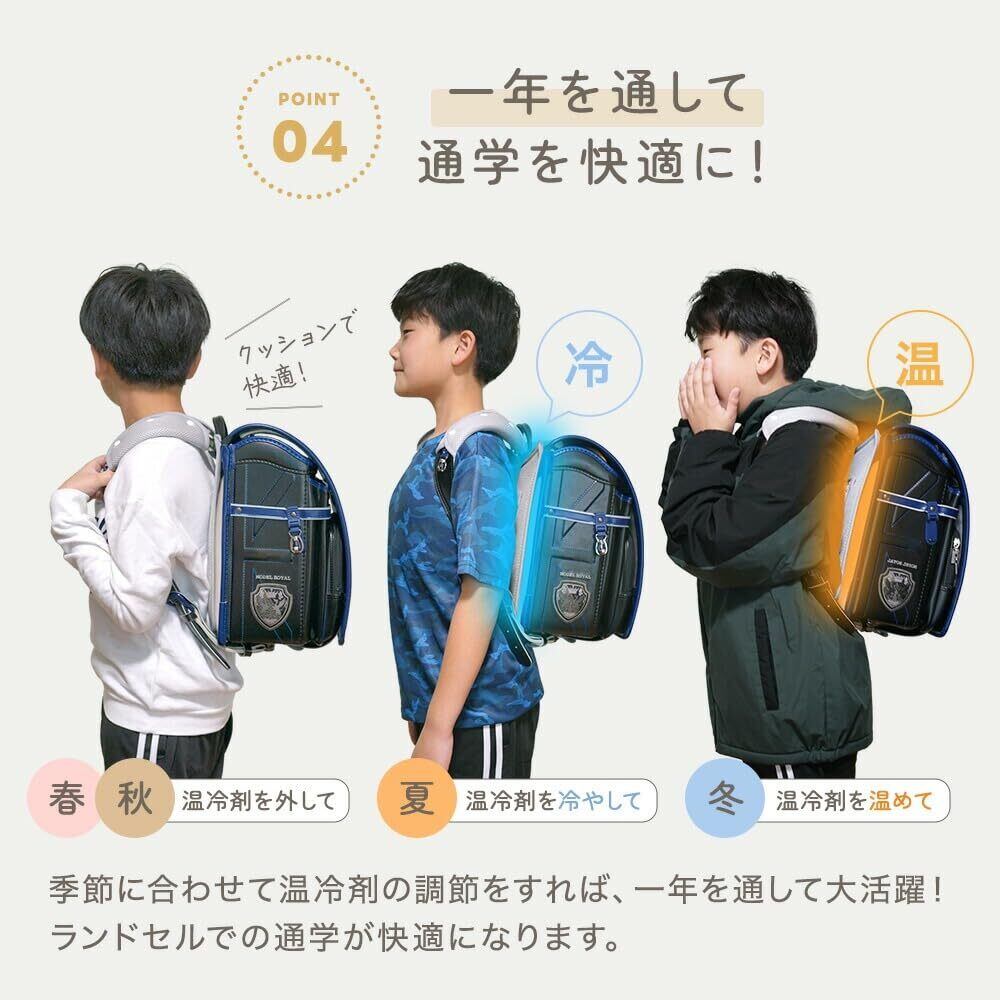 [注意事項]●パッドについて ・ランドセルの種類や形状によって、ご使用できない場合がございます。 ・無理に引っ張ったり、鋭利なもので引っ掻いたりしないでください。破れや破損の原因になるおそれがあります。 ●温冷剤について ・直接肌にあてるとやけどや凍傷になる危険がございますので、必ずタオルなどでカバーして使用してください。 ・-18℃以上で冷やさないでください。 ・80℃以上のお湯で加熱しないでください。 ・加熱しすぎに注意してください。加熱しすぎると商品が破裂・破損するおそれがあります。 ・電子レンジから取り出す際はやけどに注意してください。 ・やけどや低温やけどに注意し、必ず温度を確かめ適温になってから使用してください。