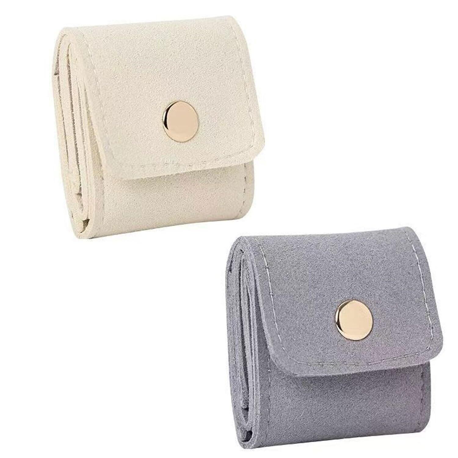 【2022最新】アクセサリーケース ミニ 2PCS ジュエリーポーチ コンパクト かわいい アクセサリーポーチ ミニサイズ 旅行イヤリング収納ジュエ 携帯便利な折りたたみ式 トラベルジュエリーバッグ 小物収納袋 ネックレス・指輪・イヤリング用(グレー+ベージュ)