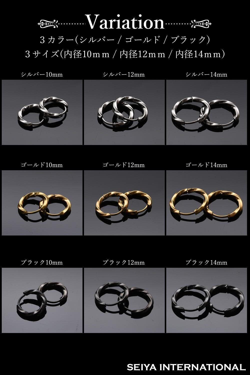 [SEIYA INTERNATIONAL] ピアス メンズ フープピアス リングピアス ツイスト ステンレス 18G 両耳 2個セット