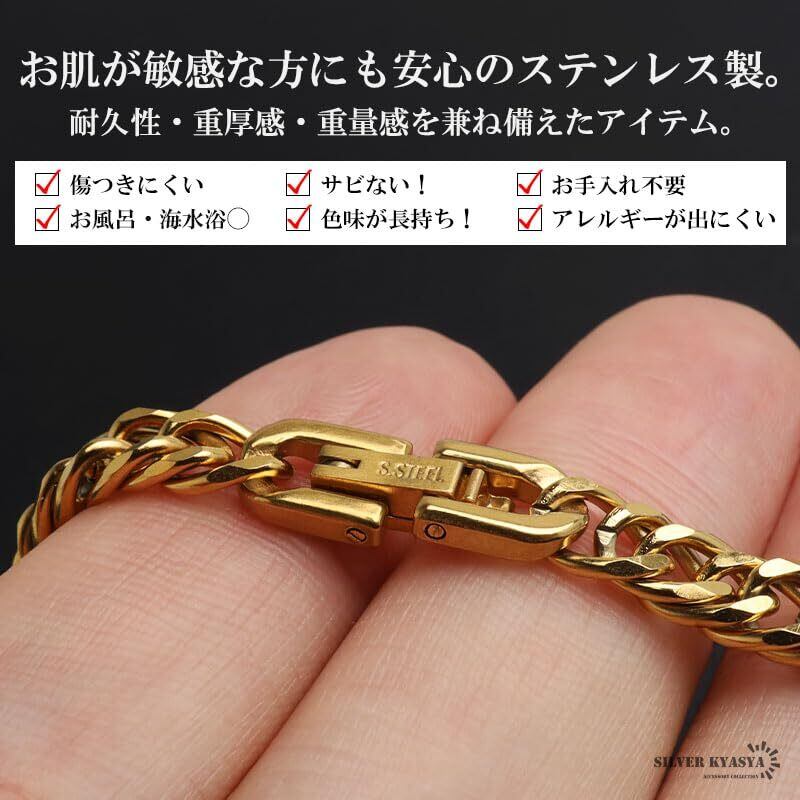 【数量限定】[silver KYASYA] ステンレス 定番 ダブル喜平ネックレス 幅7タイプ チェーンネックレス メンズ 6面カット ゴールド シルバー 燻し 18KGP 長さ4サイズ 細め 太幅 中折れ式留め具 金属アレルギー対応