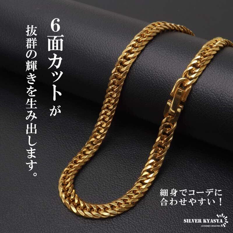 [silver KYASYA] ステンレス 定番 ダブル喜平ネックレス 幅7タイプ チェーンネックレス メンズ 6面カット ゴールド シルバー 燻し 18KGP 長さ4サイズ 細め 太幅 中折れ式留め具 金属アレルギー対応