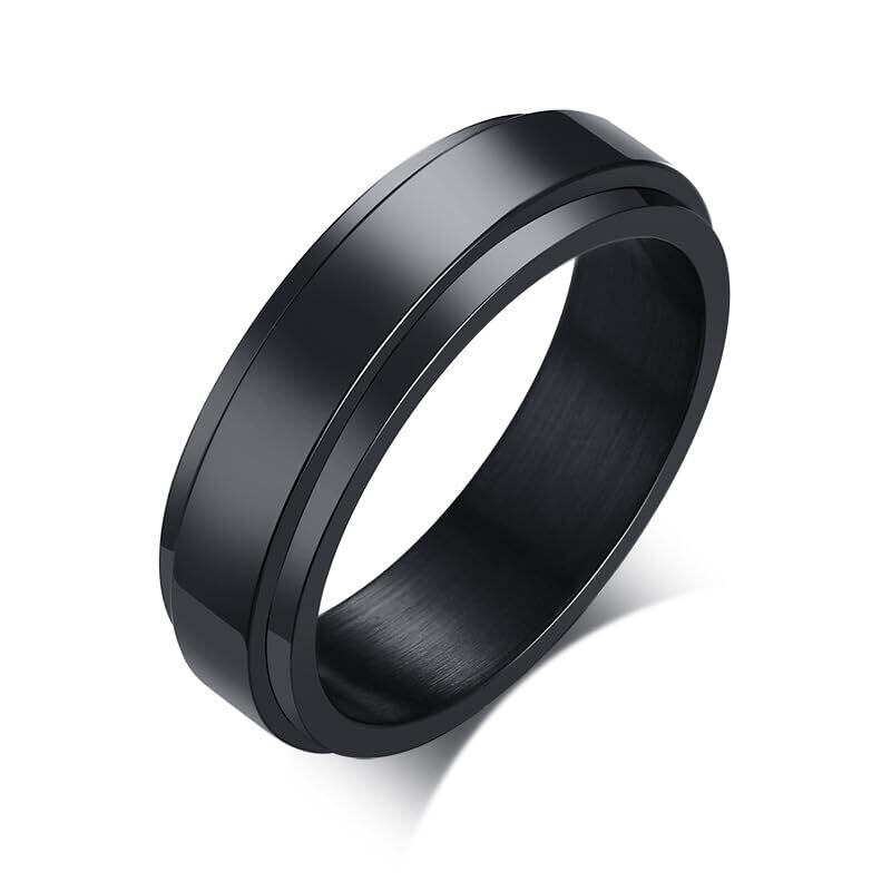 [Rockyu] スピナーリング ステンレス 指輪 人気 金属アレルギー対応 光沢仕上げ 回転式 無地デザイン 幅6mm