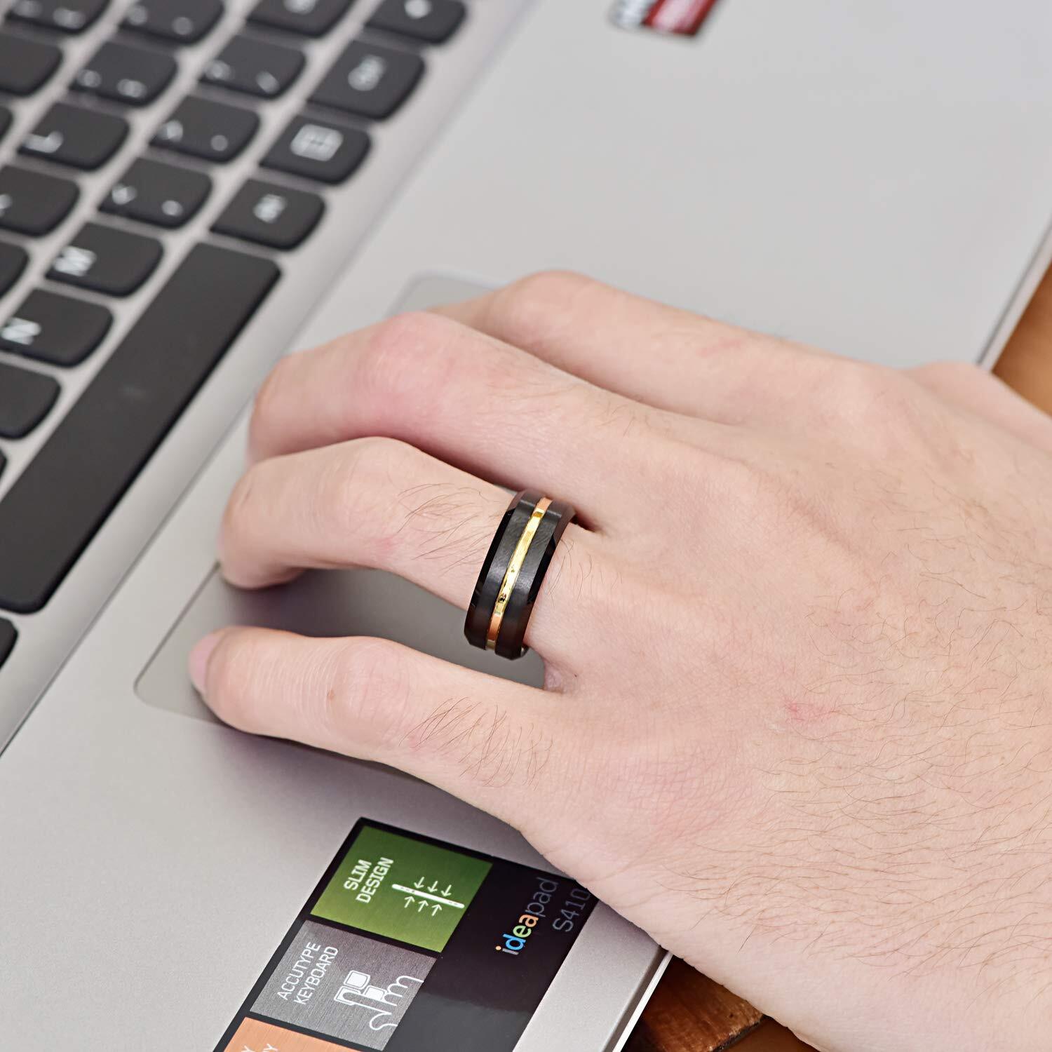 【在庫処分】[Nuncad(ヌンカド)] メンズ リング タングステン 指輪 平打ち つや消し カラー:ブラック&ゴールド 幅:8mm 29号