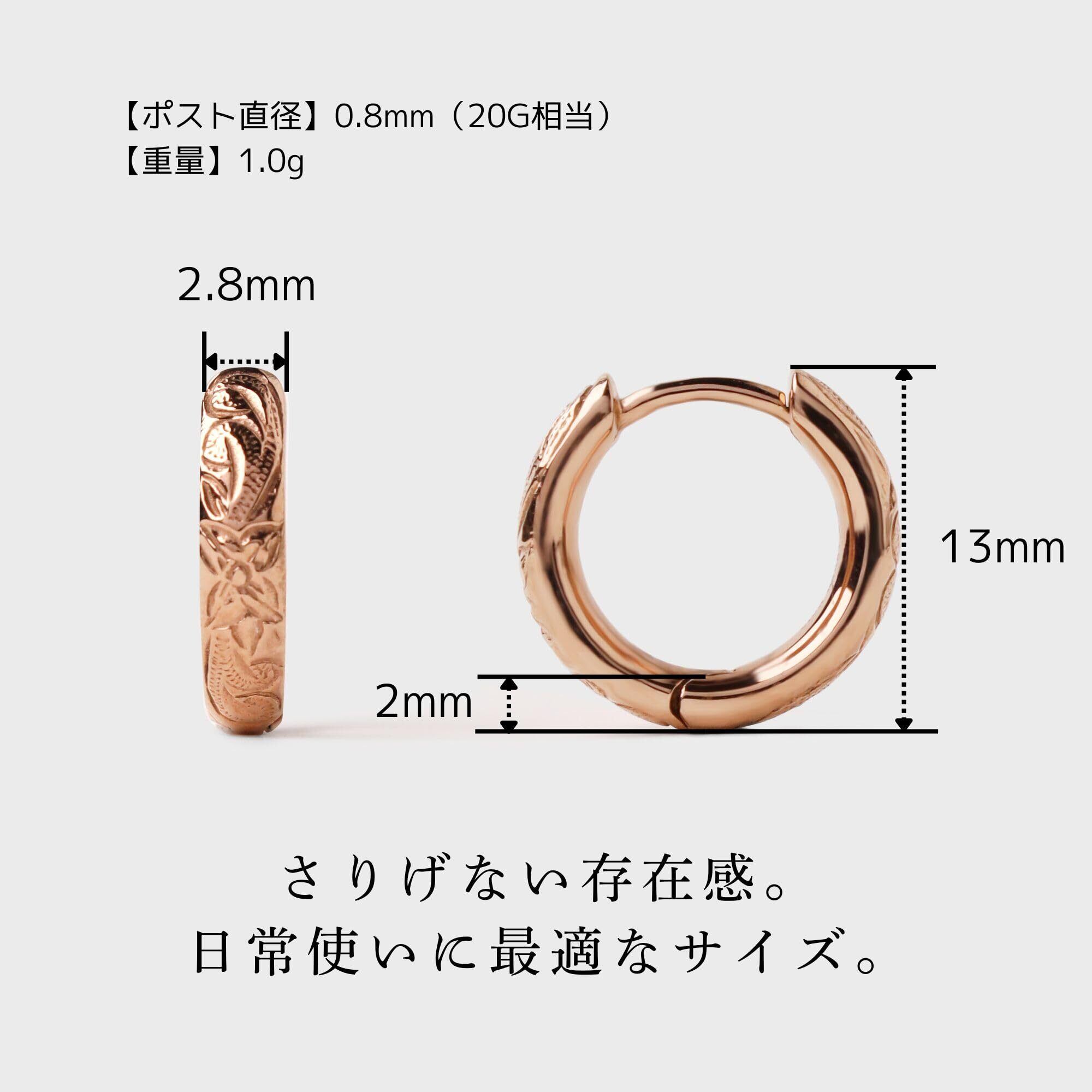 【繊細なハワイアン調の彫りが美しいフープピアス】程よく小ぶりでデイリーユースにピッタリ。品のある輝きを放つピンクゴールド。