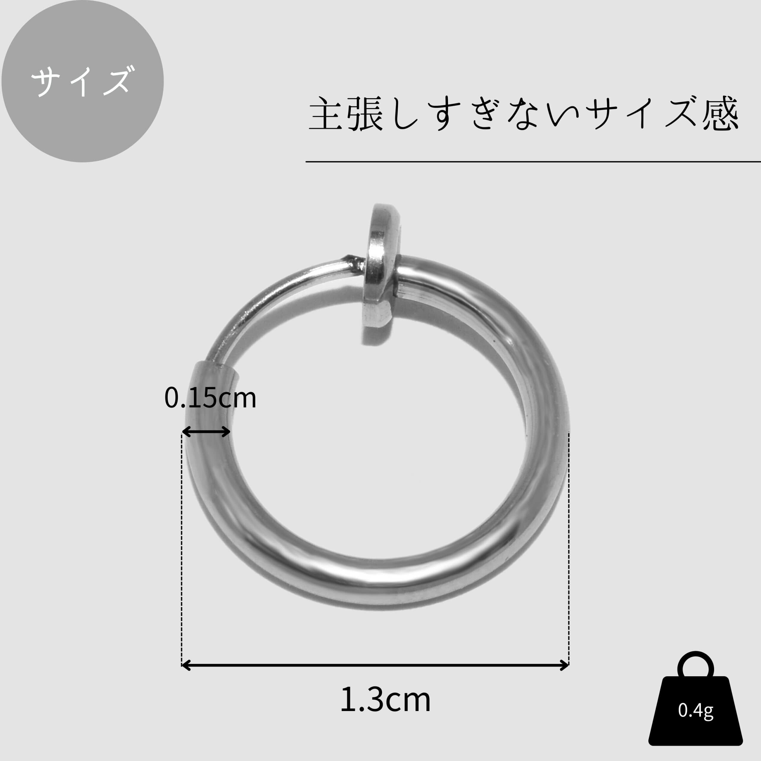 【主張しすぎないサイズ感】「直径」1.3cm「厚み」0.15cm「重量」0.4g / 初めての方でも着けやすい主張しすぎないサイズ。他のピアス(イヤリング,イヤーカフ)との合わせ着けにも最適です。