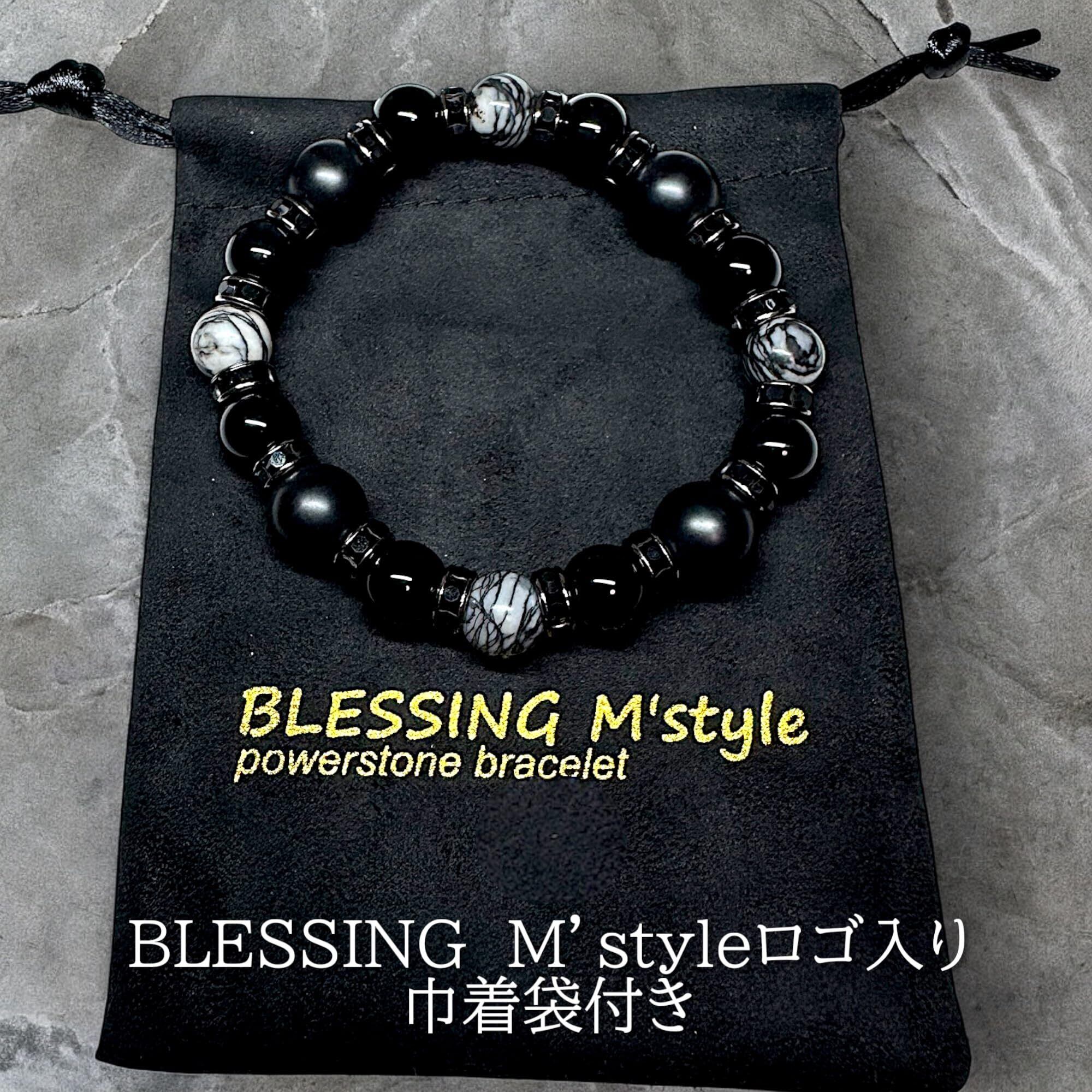 【新着商品】[BLESSING M'style] 天然石 パワーストーン ブレスレット メンズ 【仕事運 忍耐力 お守り 開運】 ゼブラジャスパー マットオニキス オニキス ブランド名ロゴ入り巾着袋付き